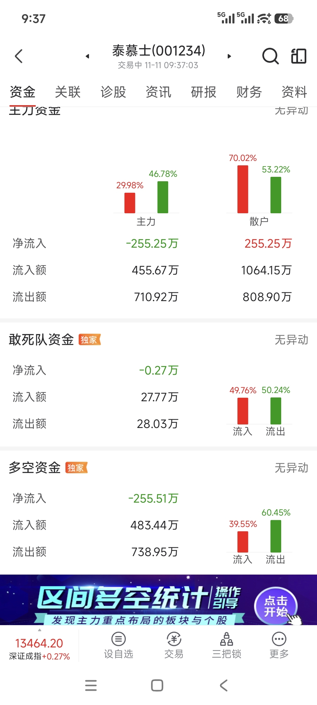 $泰慕士(SZ001234)$ 全是散户接盘。