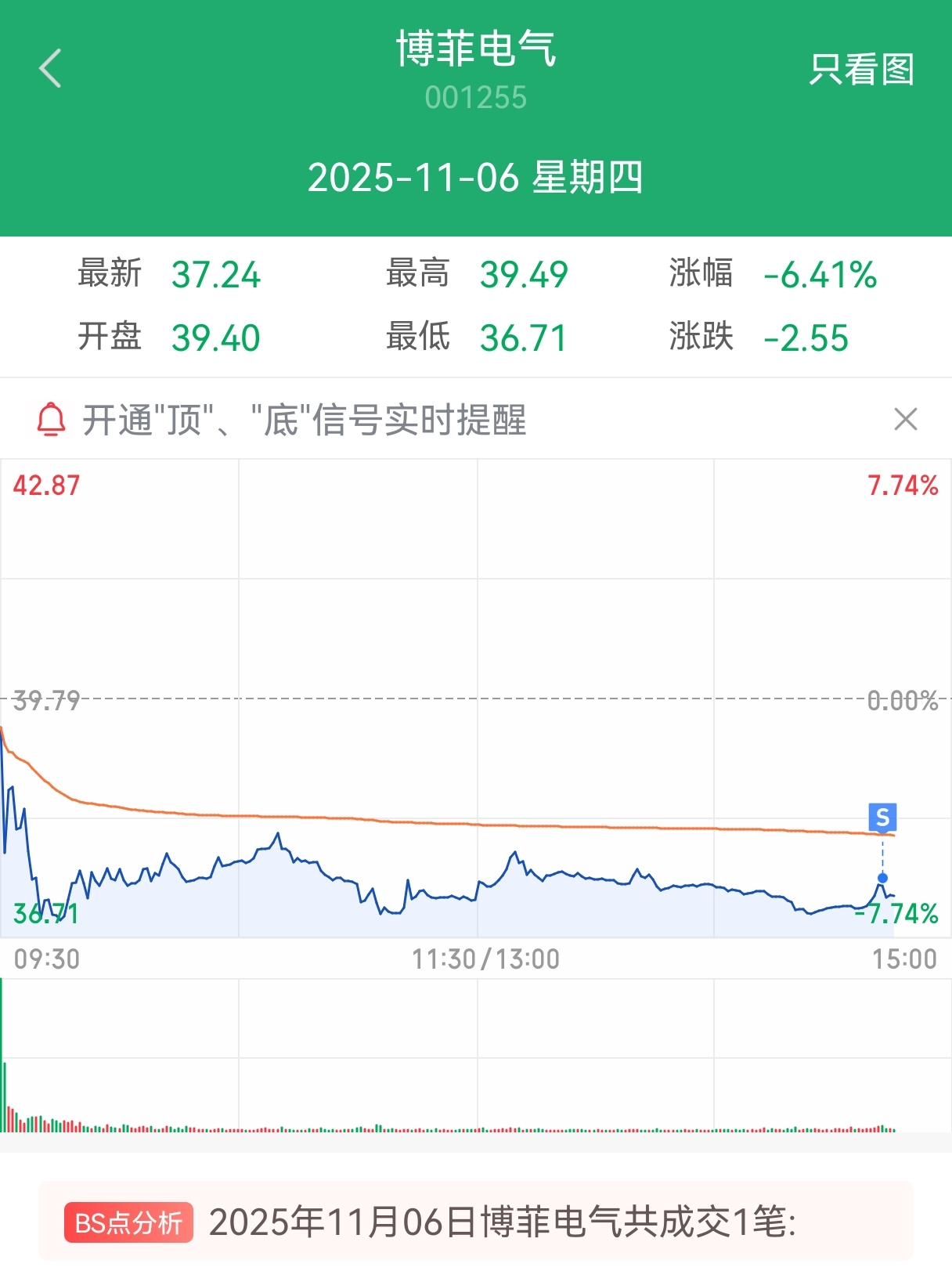 $博菲电气(SZ001255)$ 认赌服输,37.38割肉清仓。