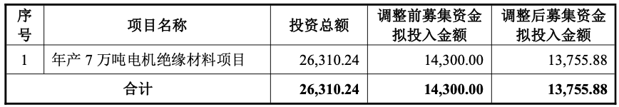 由于公司以简易程序向特定对象发行股票实际募集资金净额少于《浙江博菲电气股份有限公司2025年度以简易程序向特定对象发行股票募集说明书(注册稿)》中披露的募投项目拟投入募集资金金额,根据实际募集资金净额并结合募投项目情况,在不改变募集资金用途的前提下,公司拟对募投项目拟投入募集资金金额进行调整,将“年产7万吨电机绝缘材料项目”的募集资金投入金额由1.43亿元调整为1.38亿元。
