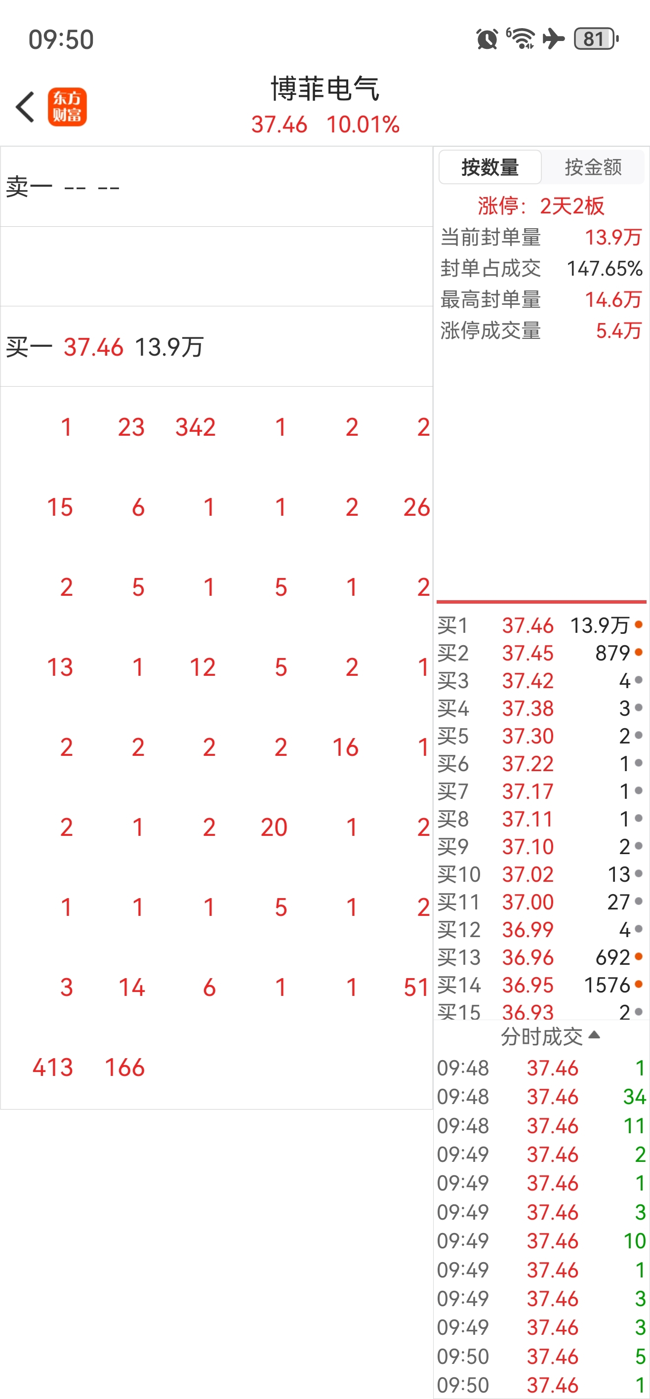 $博菲电气(SZ001255)$ 全是量化单子,龙虎榜估计五个量化,好怕突然撤单