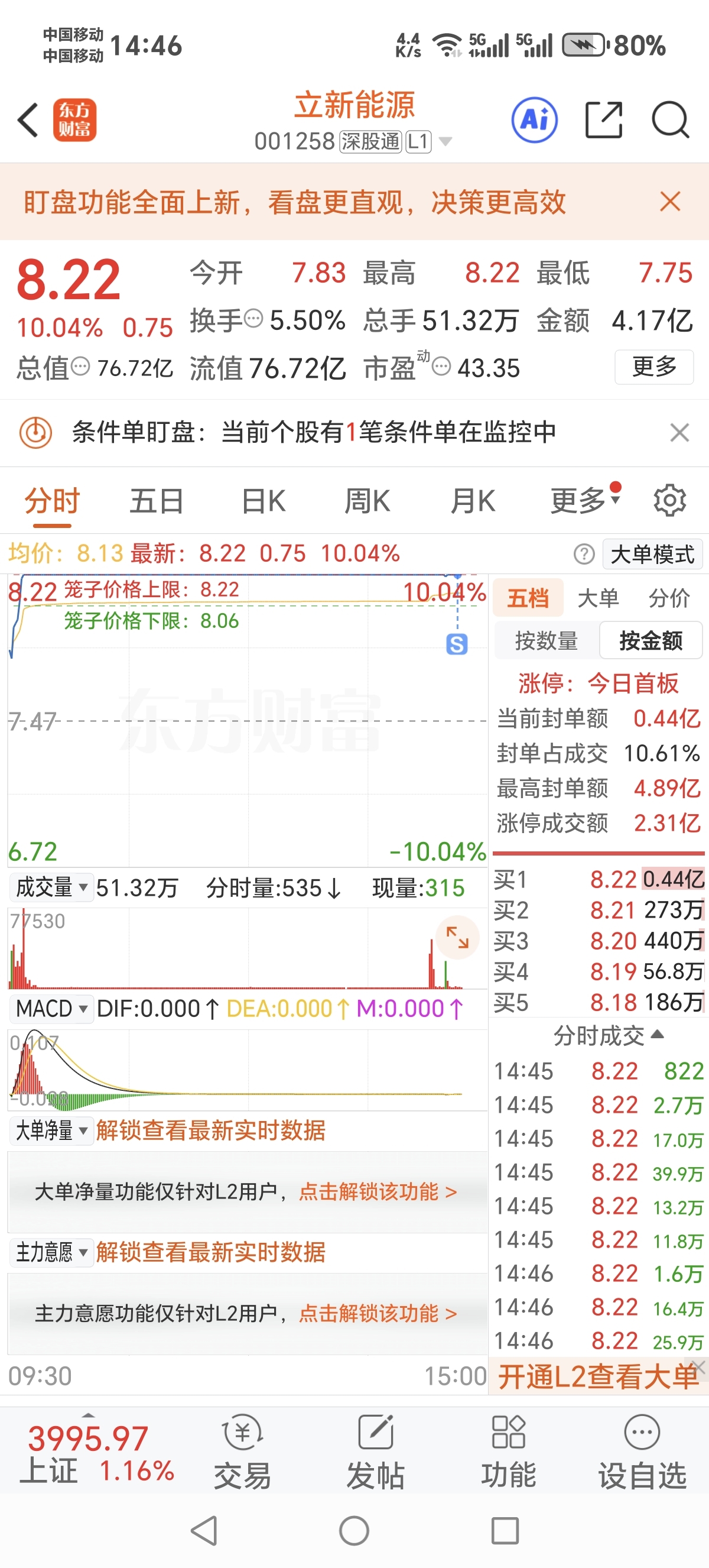 $立新能源(SZ001258)$ 下午居然还可以卖