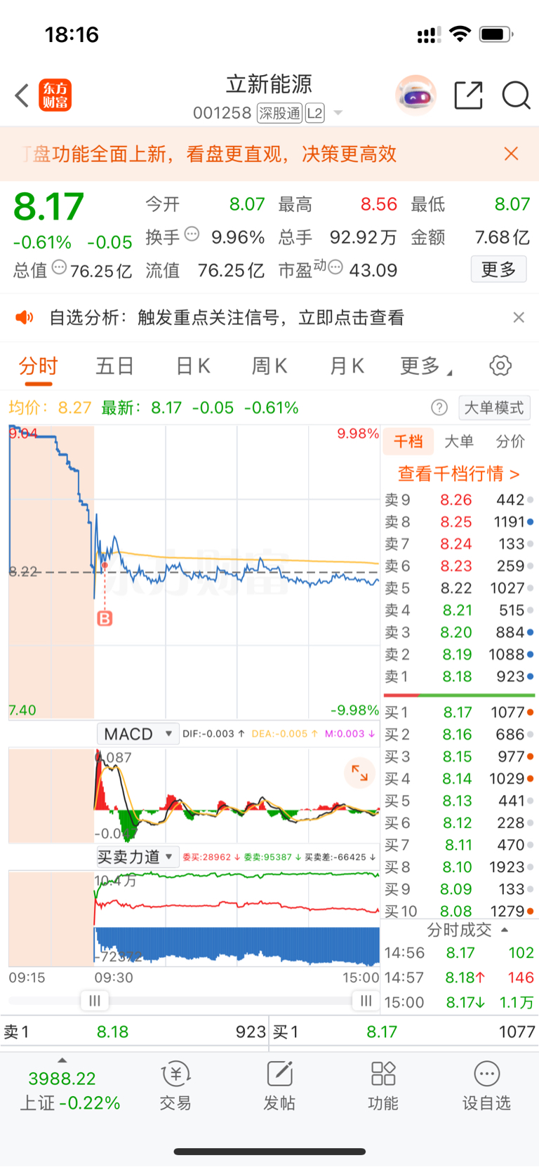 $立新能源(SZ001258)$ 早上以为能涨停,在方正科技跟你做选择,唉,明天走了