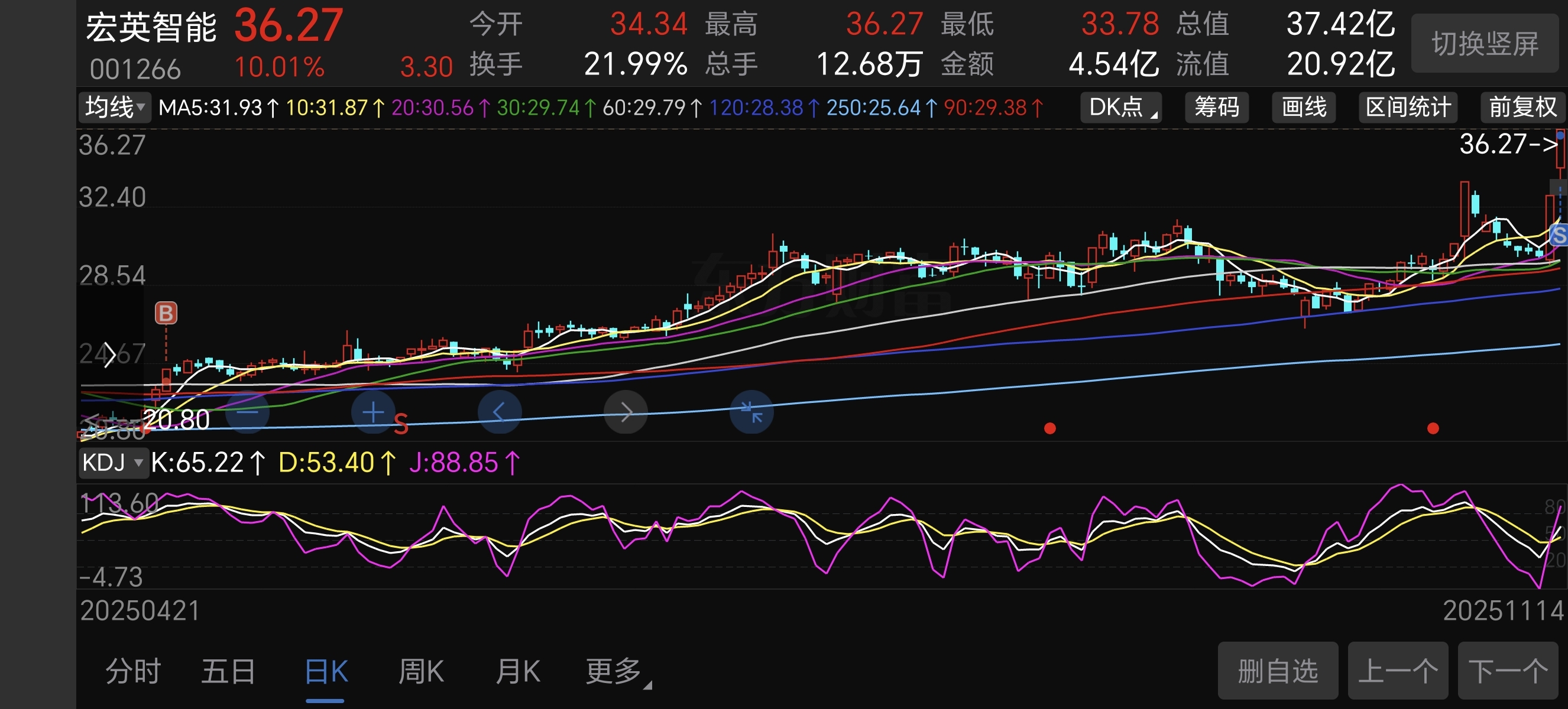 $宏英智能(SZ001266)$ 走了。换新的去。