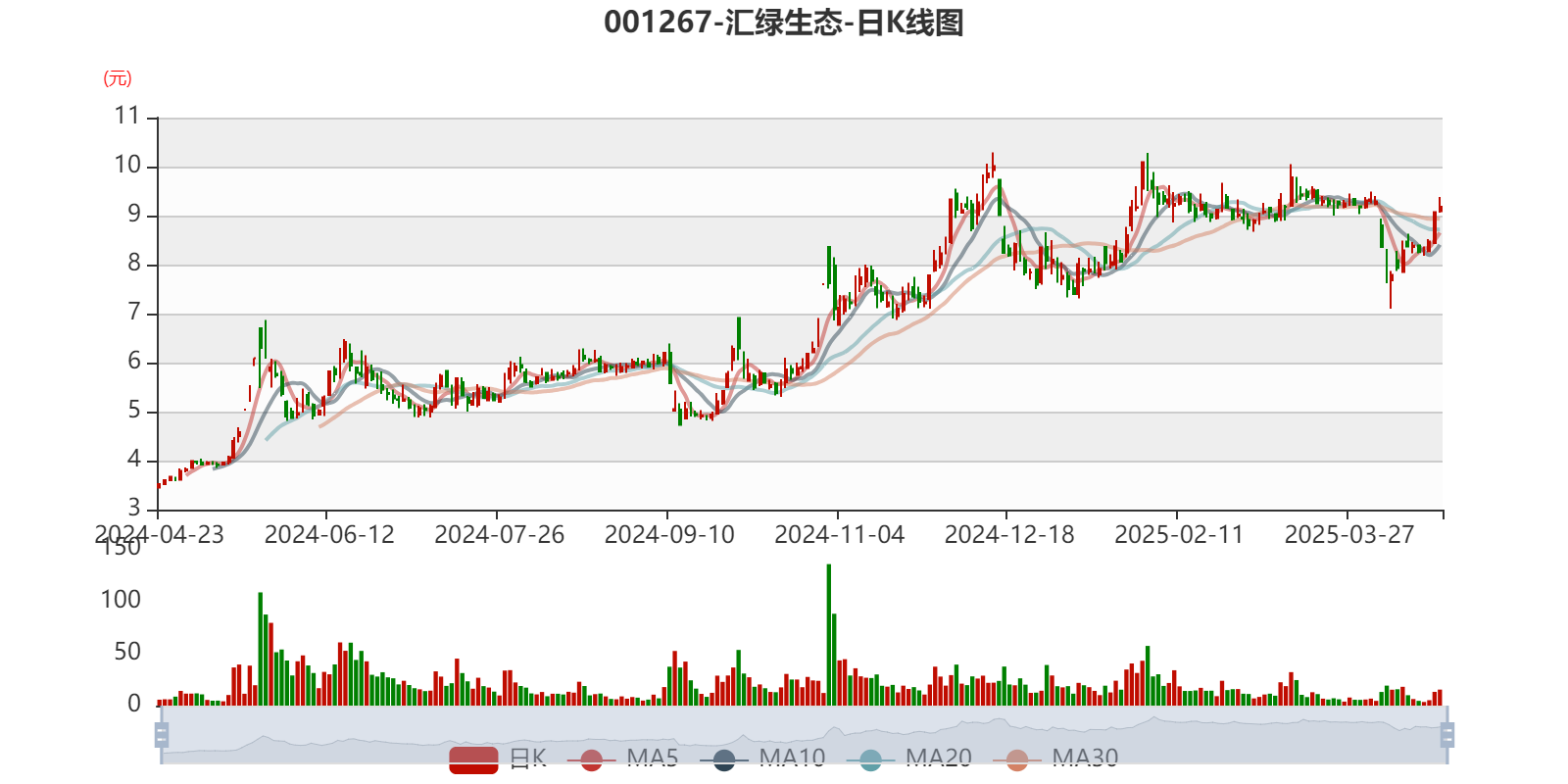 中证智能财讯汇绿生态(001267)4月23日披露2024年年度报告。2024年,公司实现营业总收入5.87亿元,同比下降14.28%;归母净利润6530.14万元,同比增长13.85%;扣非净利润4828.63万元,同比下降0.22%;经营活动产生的现金流量净额为7362.78万元,同比增长13.30%;报告期内,汇绿生态基本每股收益为0.08元,加权平均净资产收益率为4.25%。公司2024年度分配预案为:拟向全体股东每10股派现0.5元(含税)。