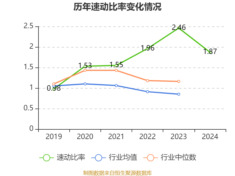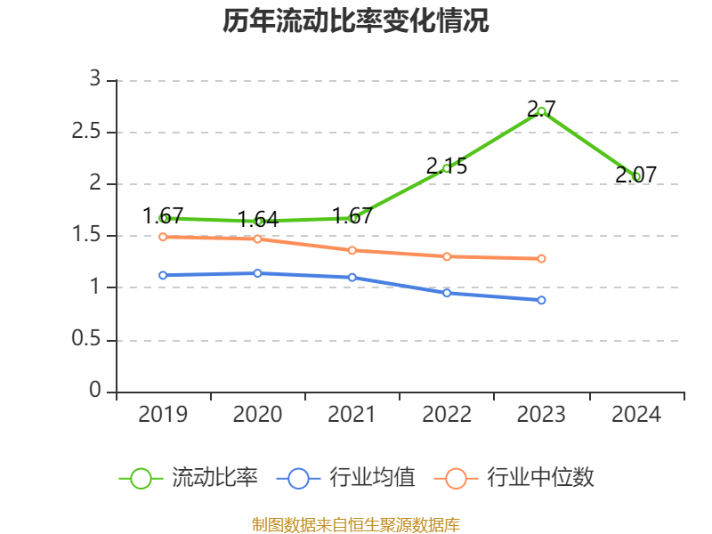 2024年,公司流动比率为2.07,速动比率为1.87。