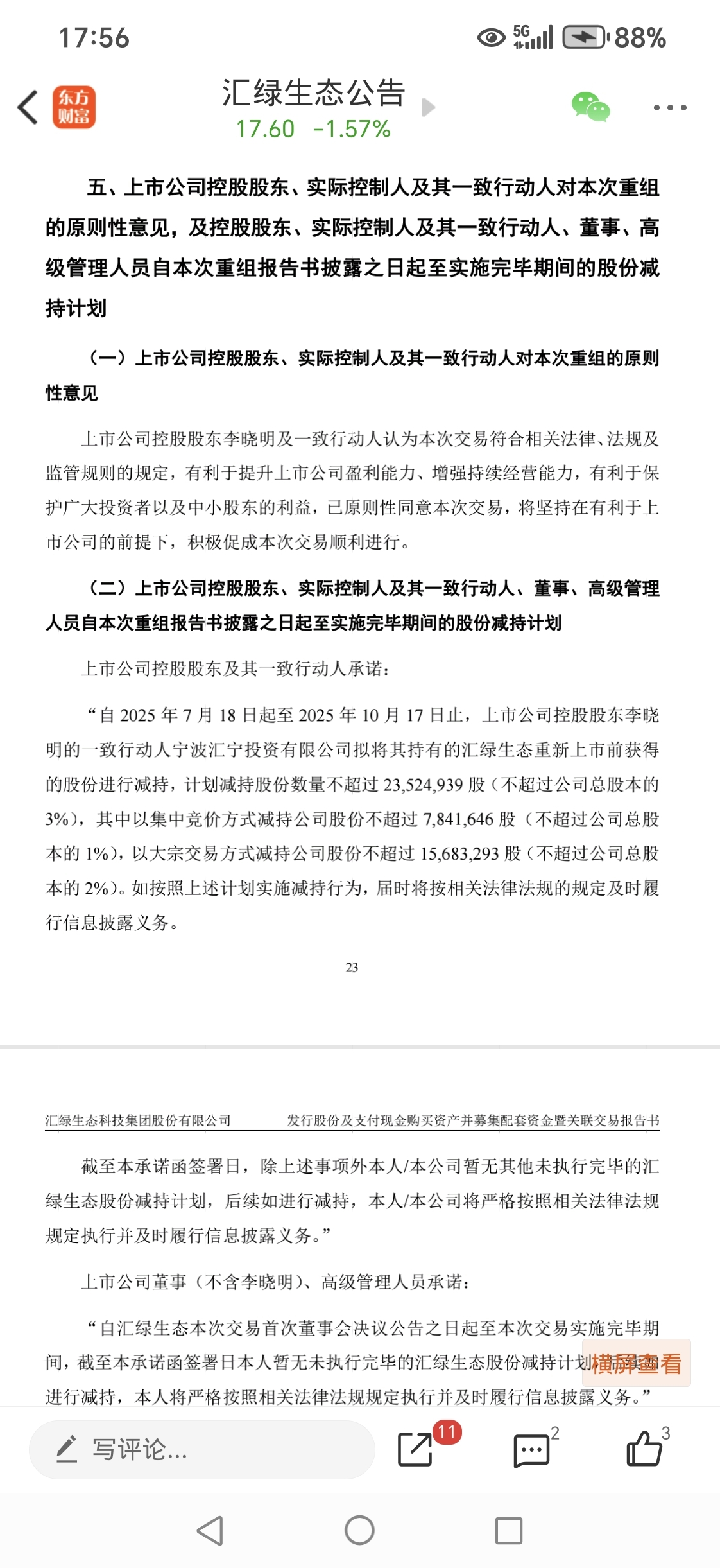 $汇绿生态(SZ001267)$ 到底是减持了没有?还要不要减持?谁知道?