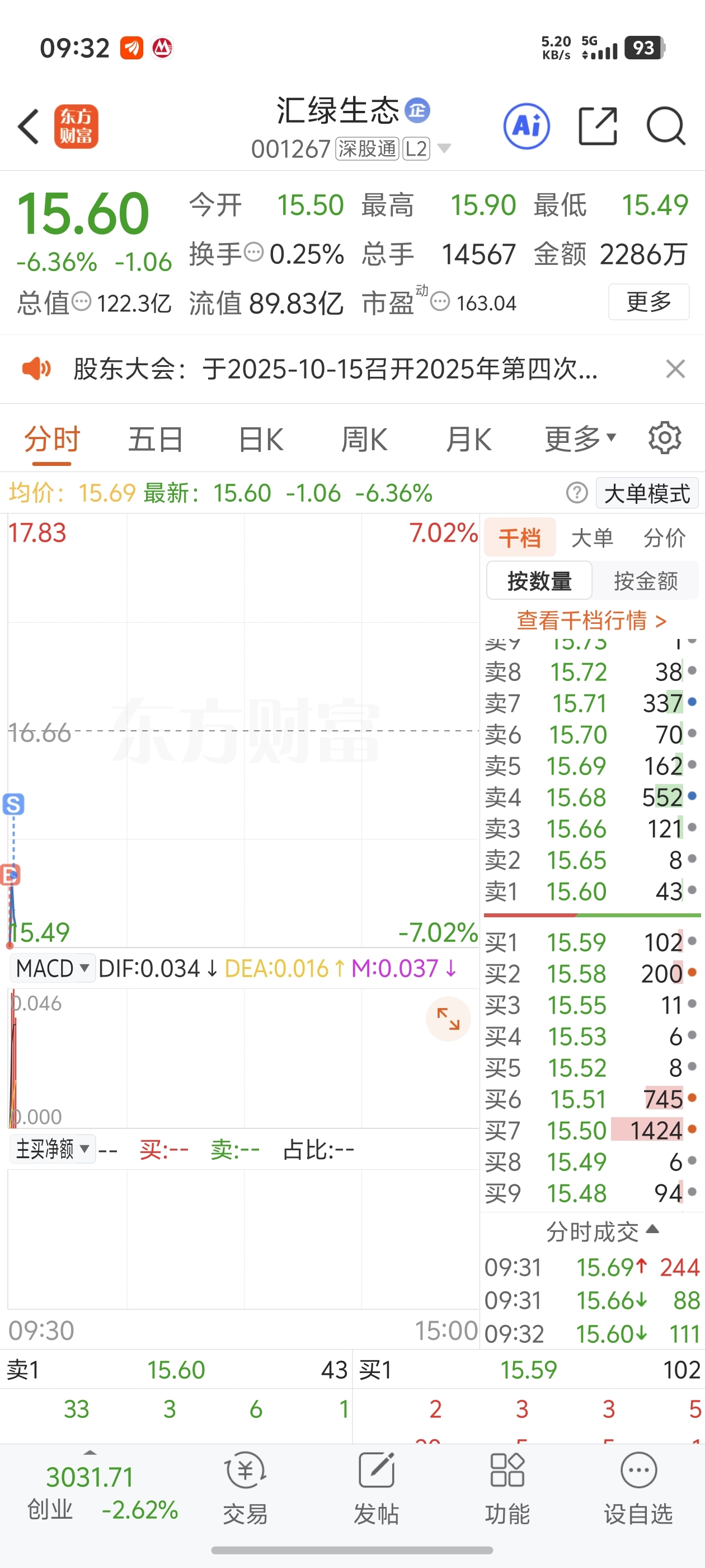 $汇绿生态(SZ001267)$ 3毛8的极限差价做一个