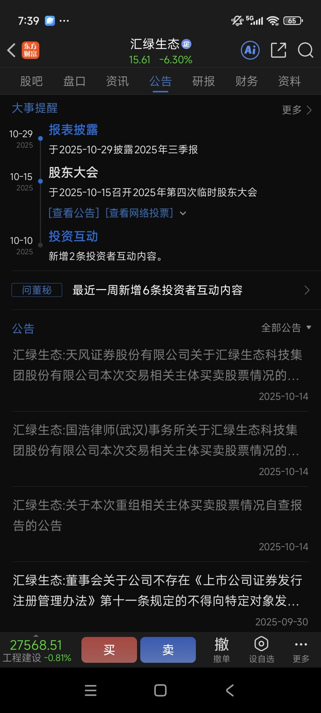 $汇绿生态(SZ001267)$ 这个公告,告诉大家,这股跌这么多和公司没有关系,实在没得发就不要发了,明天早点跌,尽快安排到12好抄底