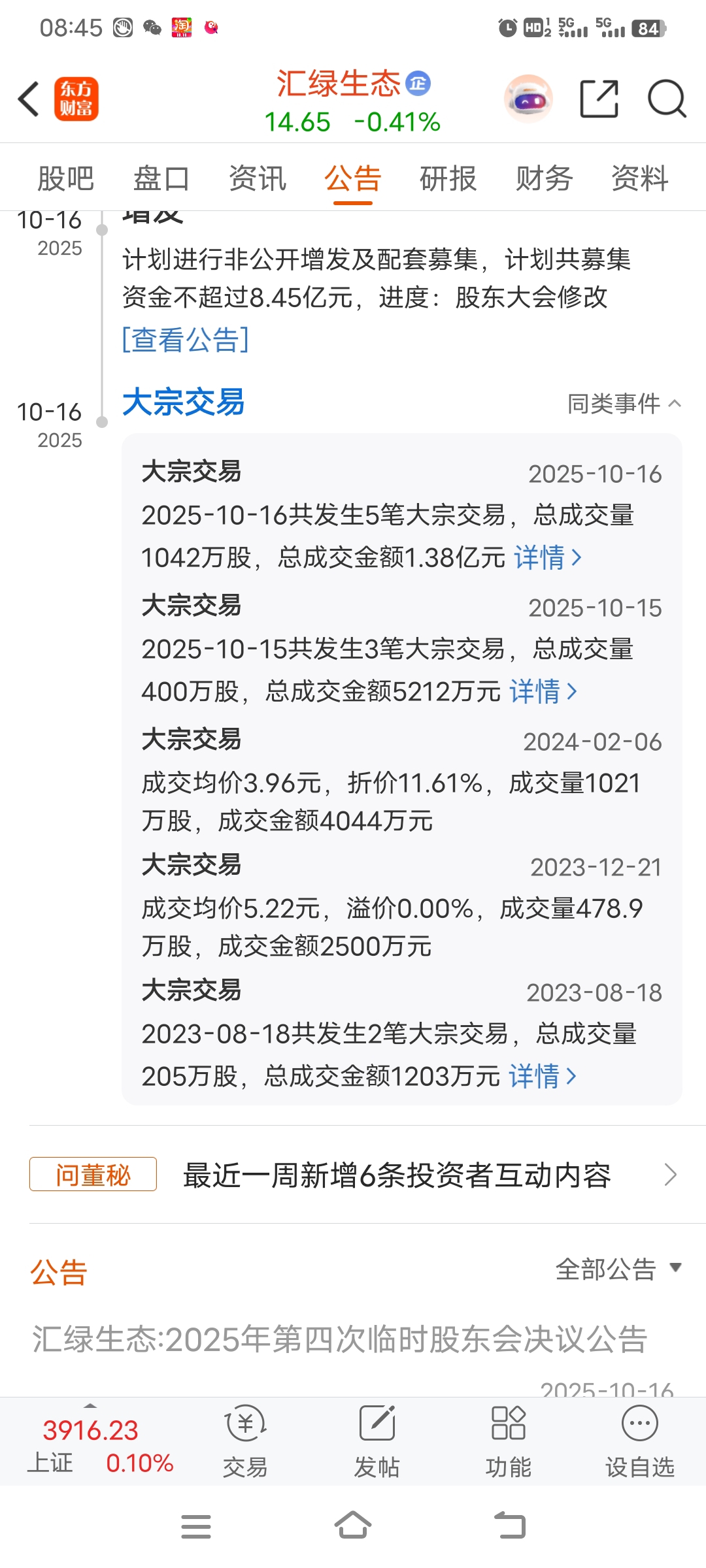 $汇绿生态(SZ001267)$ 哪次减持不是折价,别听沙雀忽悠