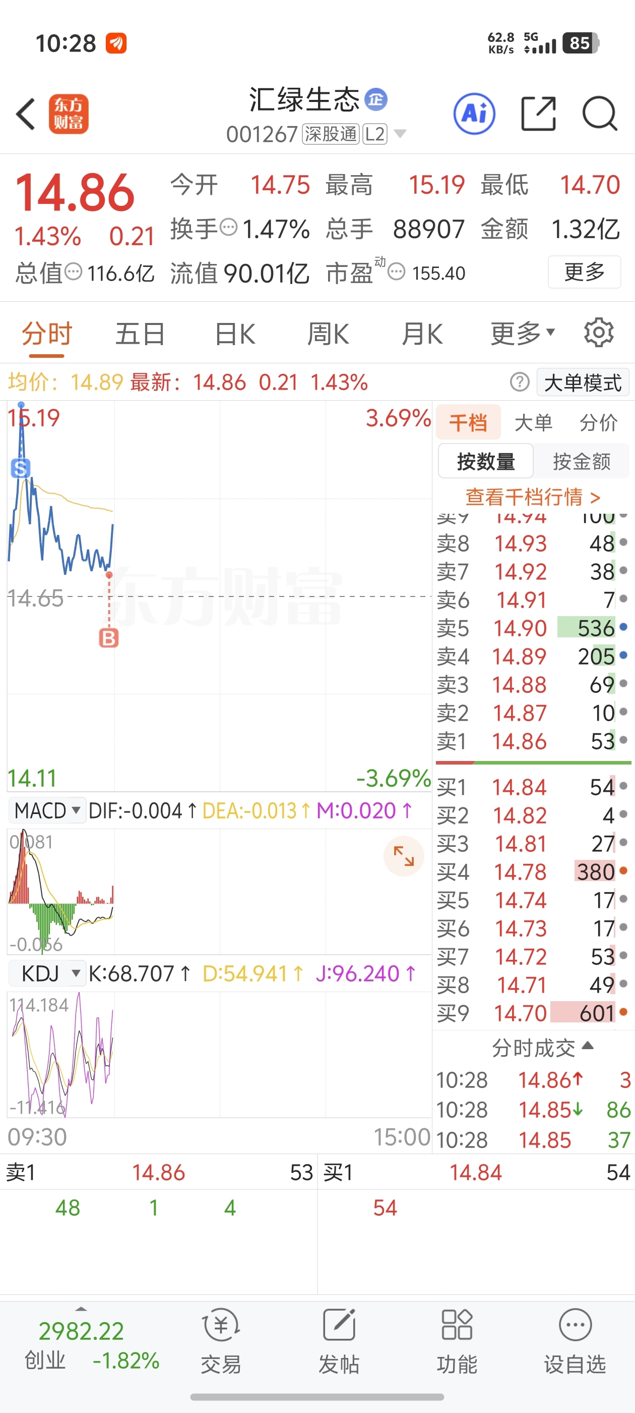 $汇绿生态(SZ001267)$ 高抛低吸走起。看老庄怎么玩