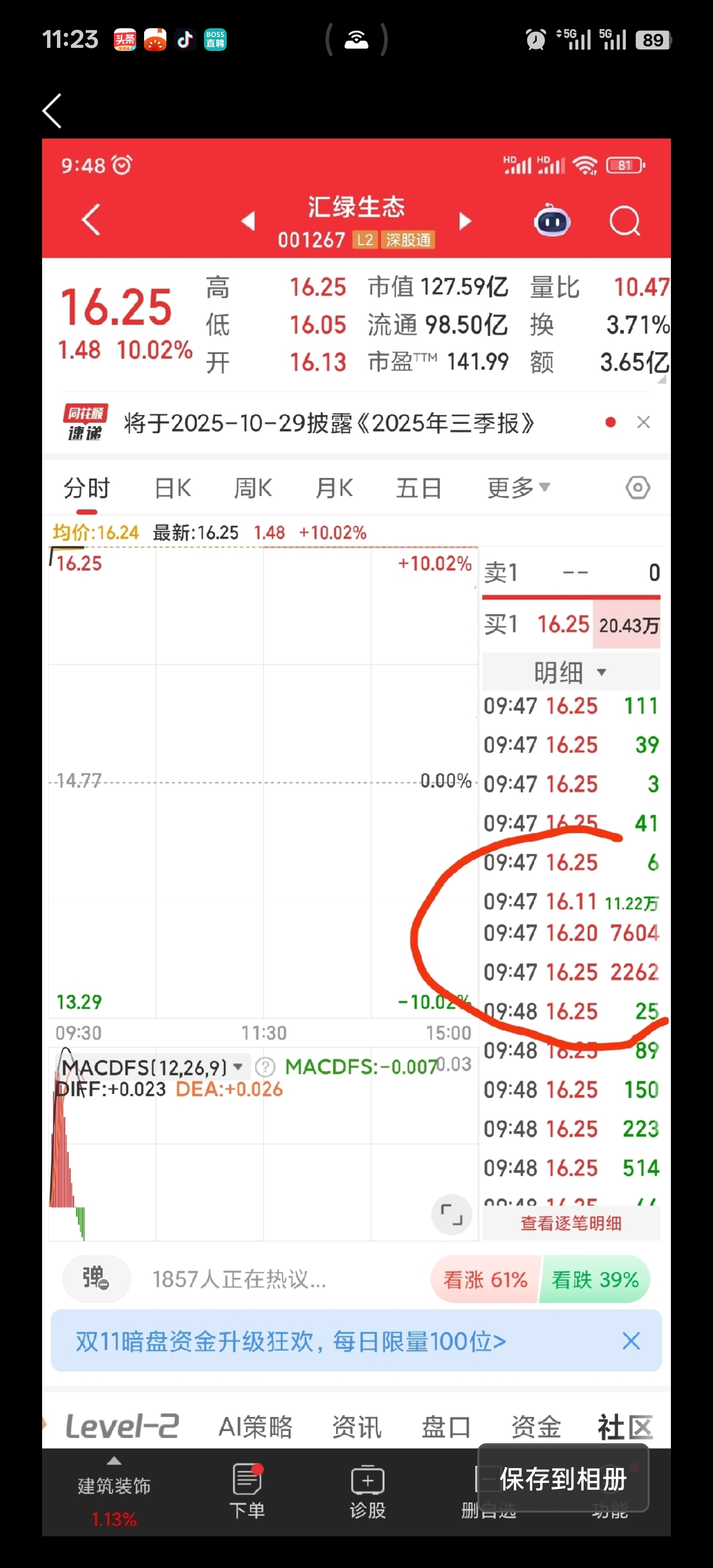 $汇绿生态(SZ001267)$ 不知道炸板了吗