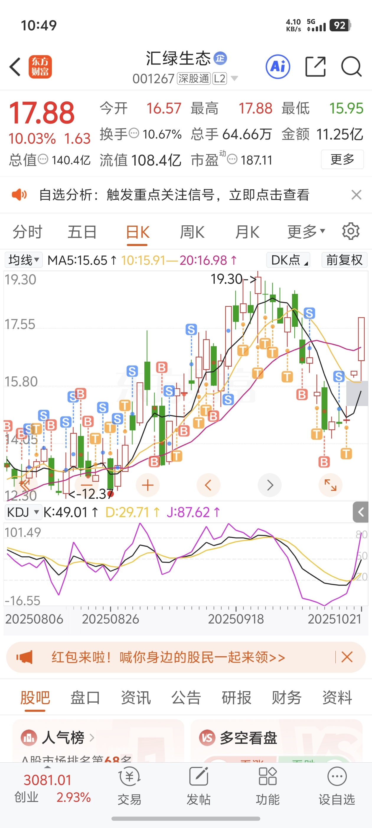 $汇绿生态(SZ001267)$ 根本不敢卖。虽然仓位不大。不多