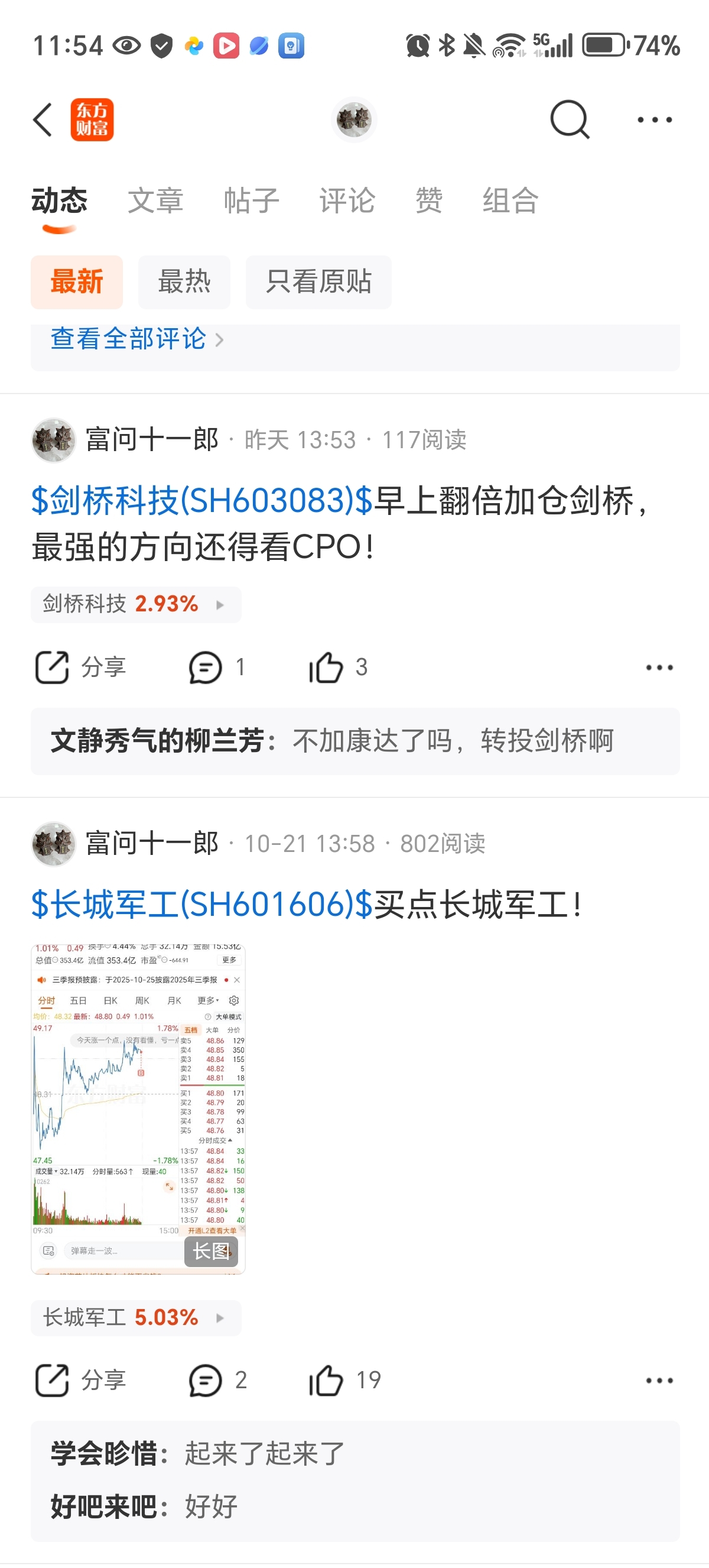 $汇绿生态(SZ001267)$ $剑桥科技(SH603083)$ $通富微电(SZ002156)$ 昨天早上全面买进了通富微电,剑桥科技,汇绿生态,自提一个汇绿生态涨停,其它两个也在稳步上涨!科技大行情!拿稳扶好!