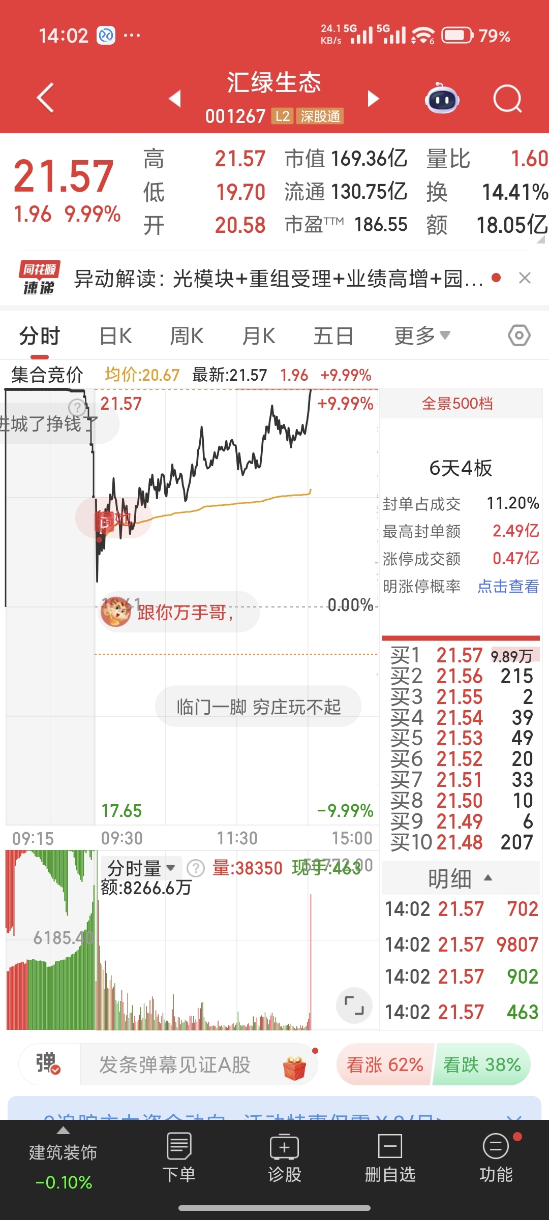 $汇绿生态(SZ001267)$ 我都说了我来了,还有人卖。我都买几天了