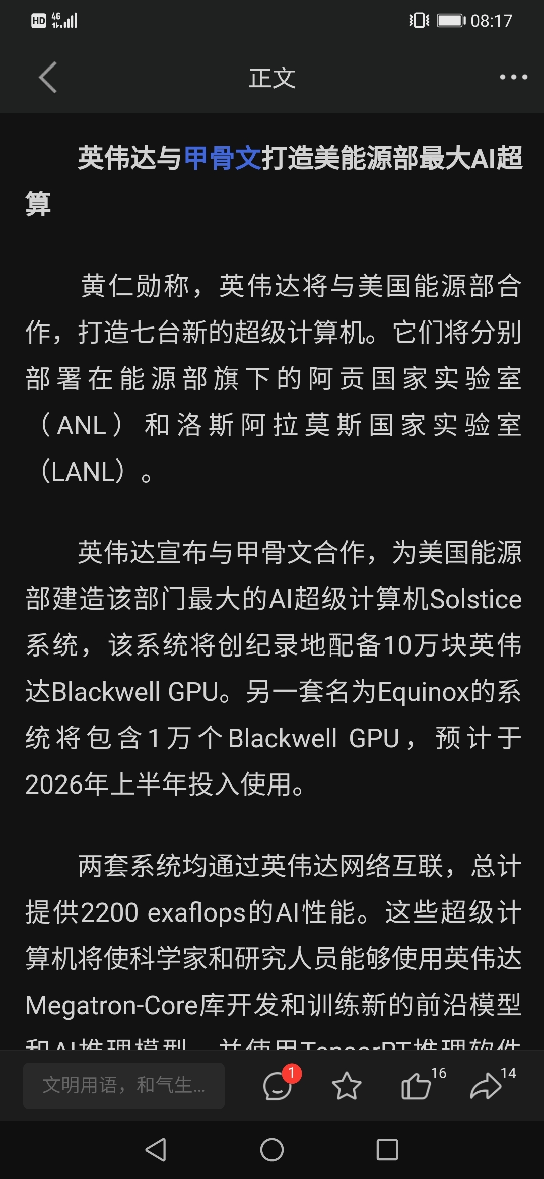 英伟达与甲骨文打造美能源部最大AI超算武汉钧恒为甲骨文光模块间接供应商。