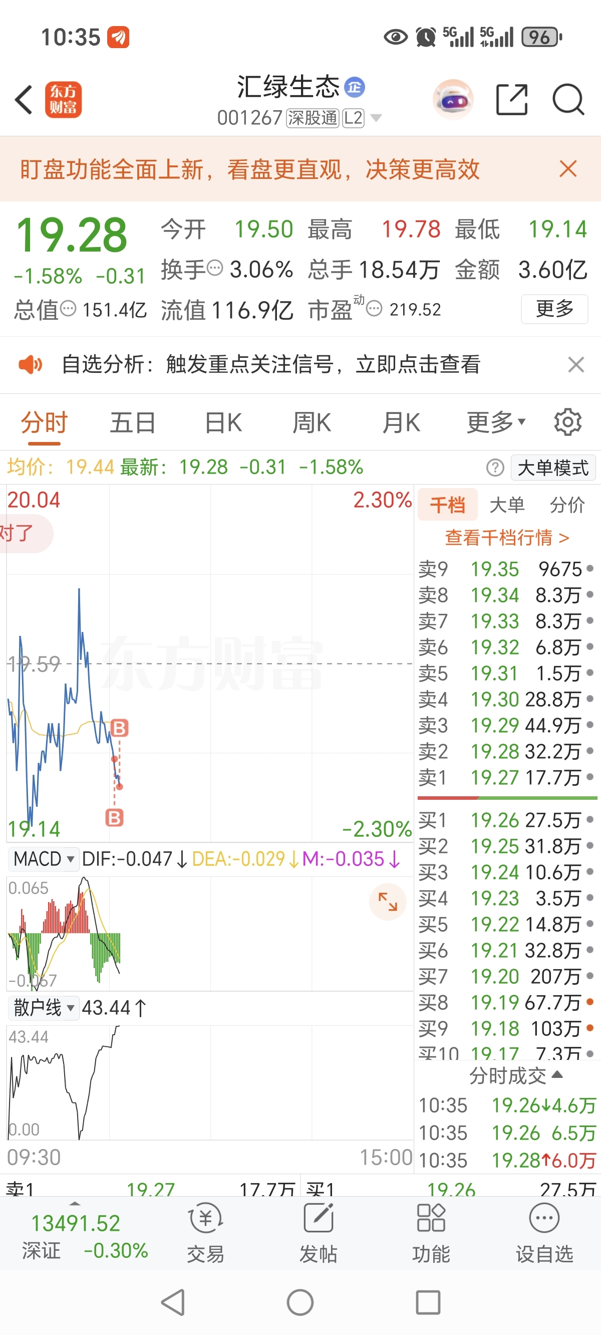 $汇绿生态(SZ001267)$ 接回来半仓了