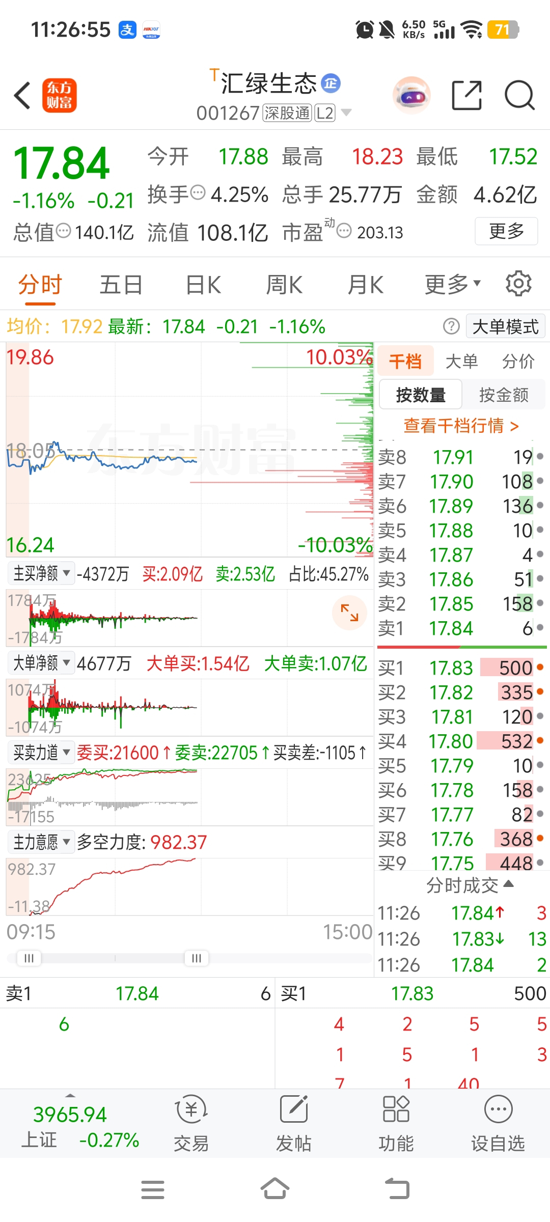 $汇绿生态(SZ001267)$ 多空力度差不多1000,大单流入4000万,但是主动买净额-4000万,这就是个坑啊
