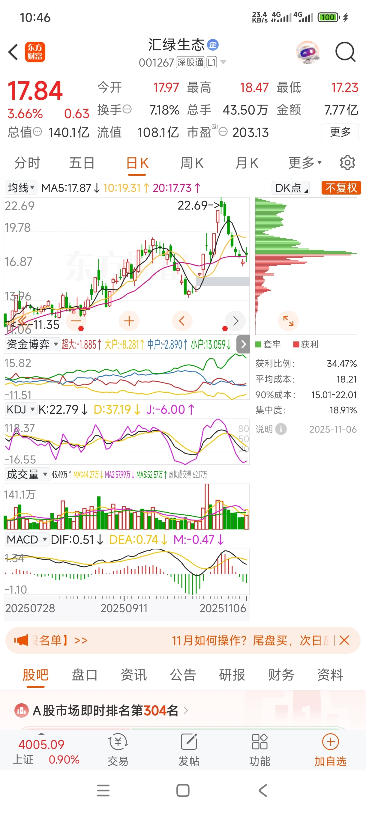 $汇绿生态(SZ001267)$ 昨天差点就让我赚20个点