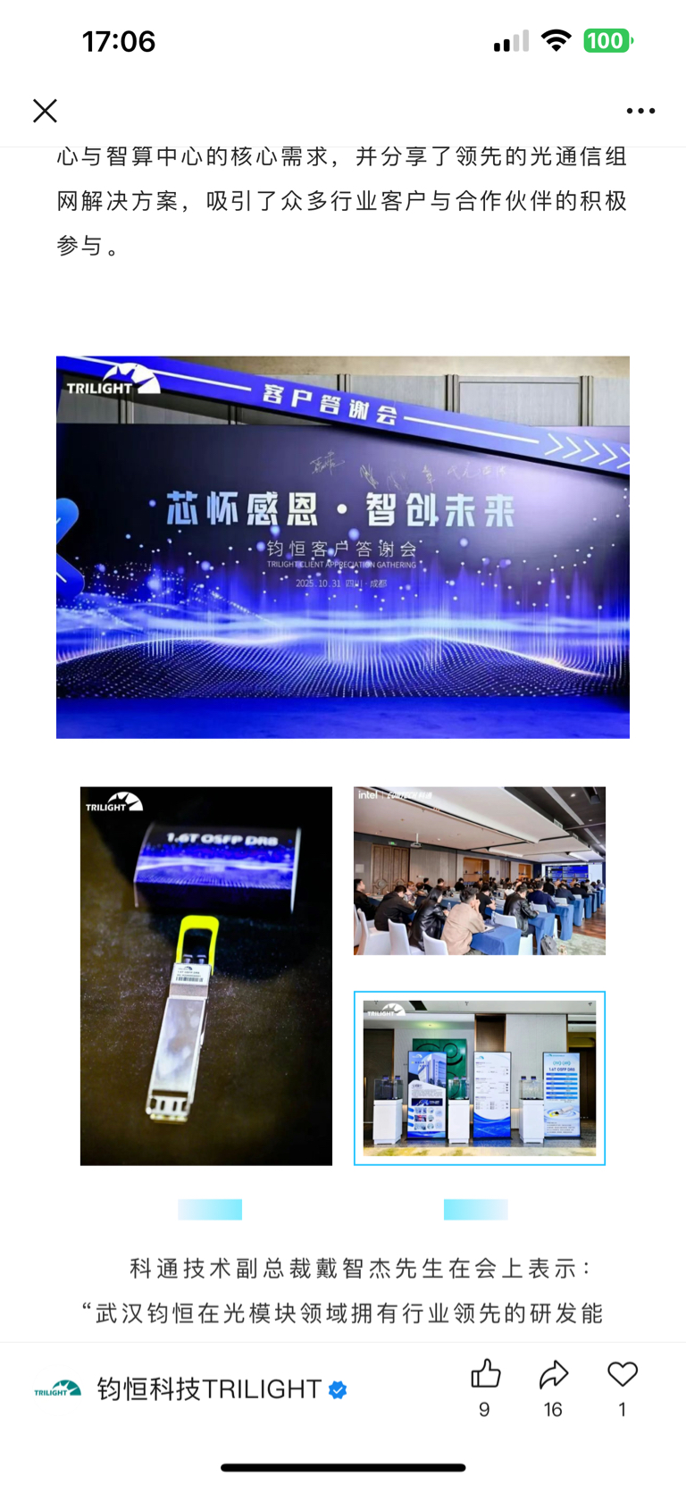 $汇绿生态(SZ001267)$ 是的,武汉钧恒1.6T已经制造出来了,官方公众号图片出来了