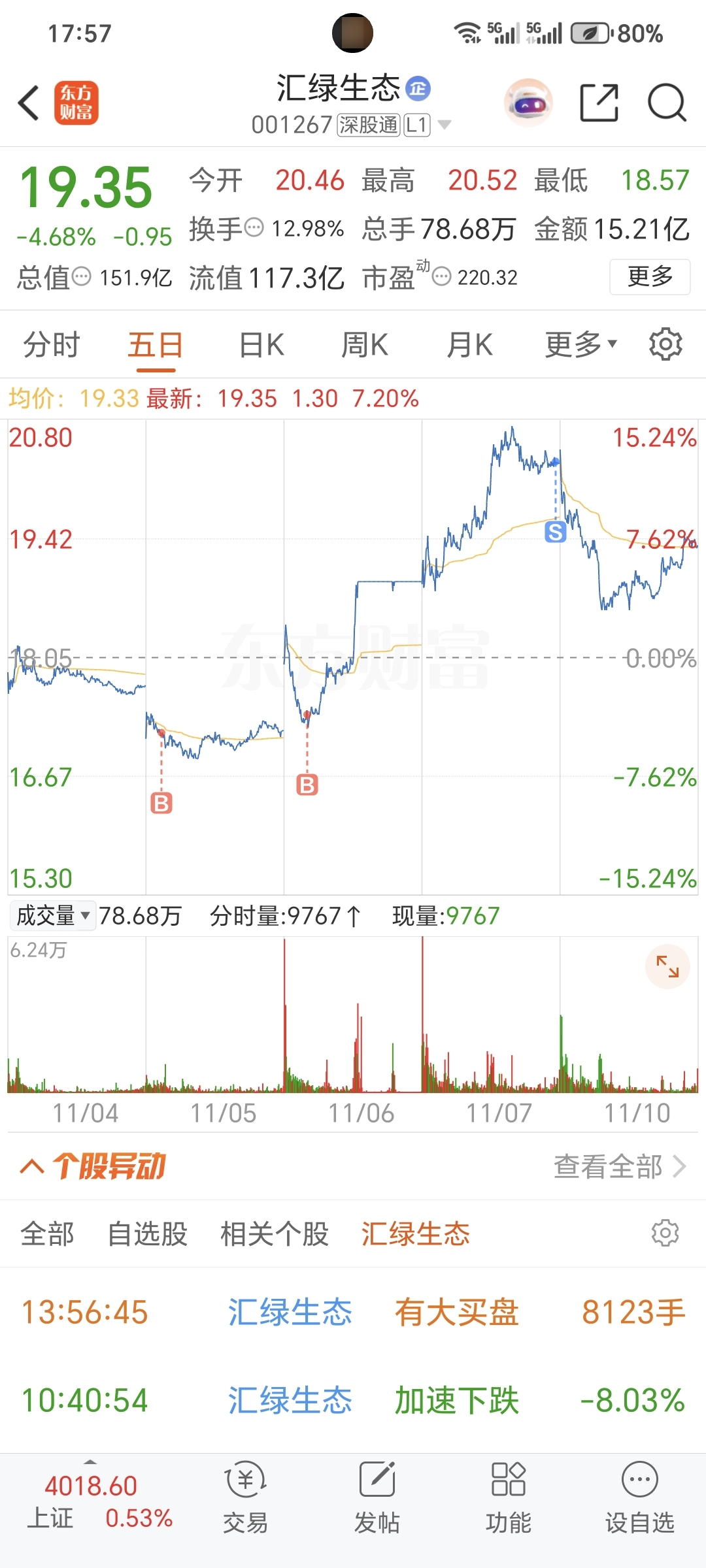 汇绿生态,上周五没能成功连板,选择了高抛一半,今天大幅回调,应该是卖对了!不过今