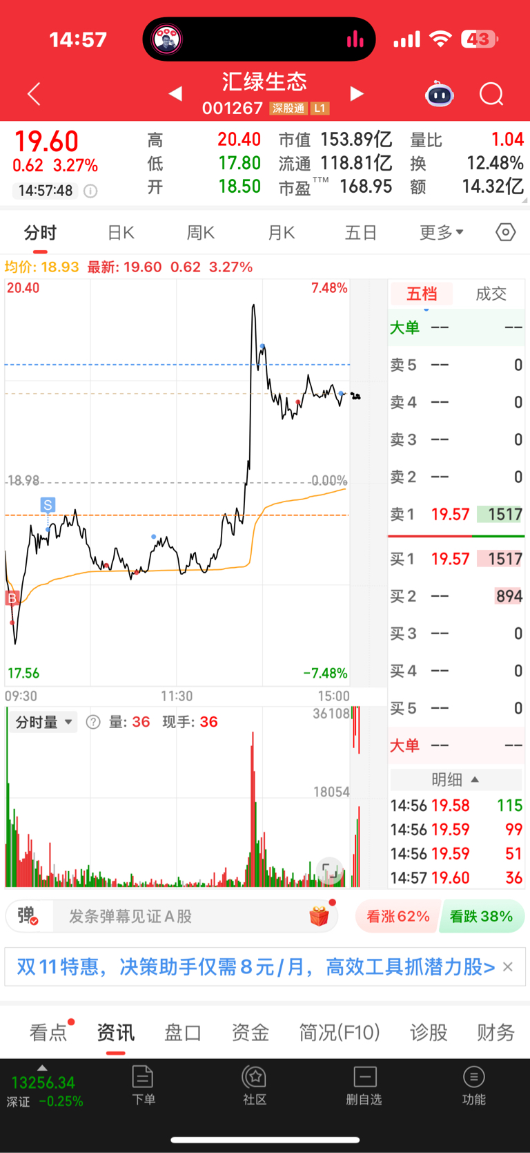 $汇绿生态(SZ001267)$ #炒股日记# 你敢跌我就敢加