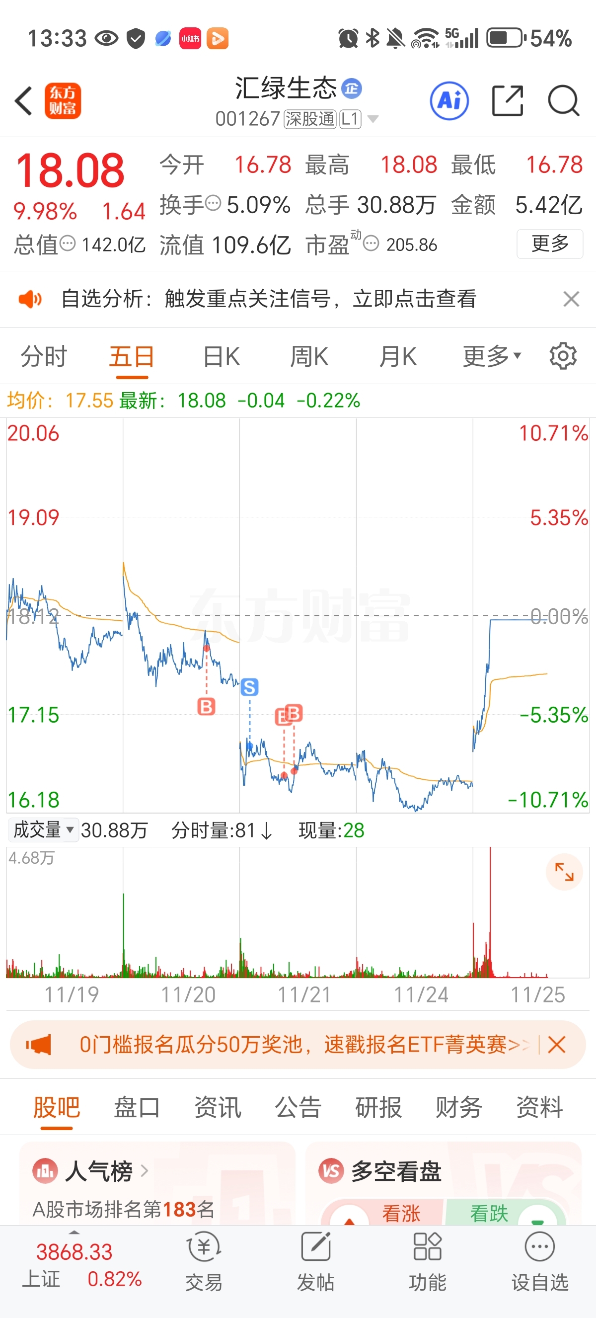 $汇绿生态(SZ001267)$ 节奏上应该是对的,再次拿到涨停板!