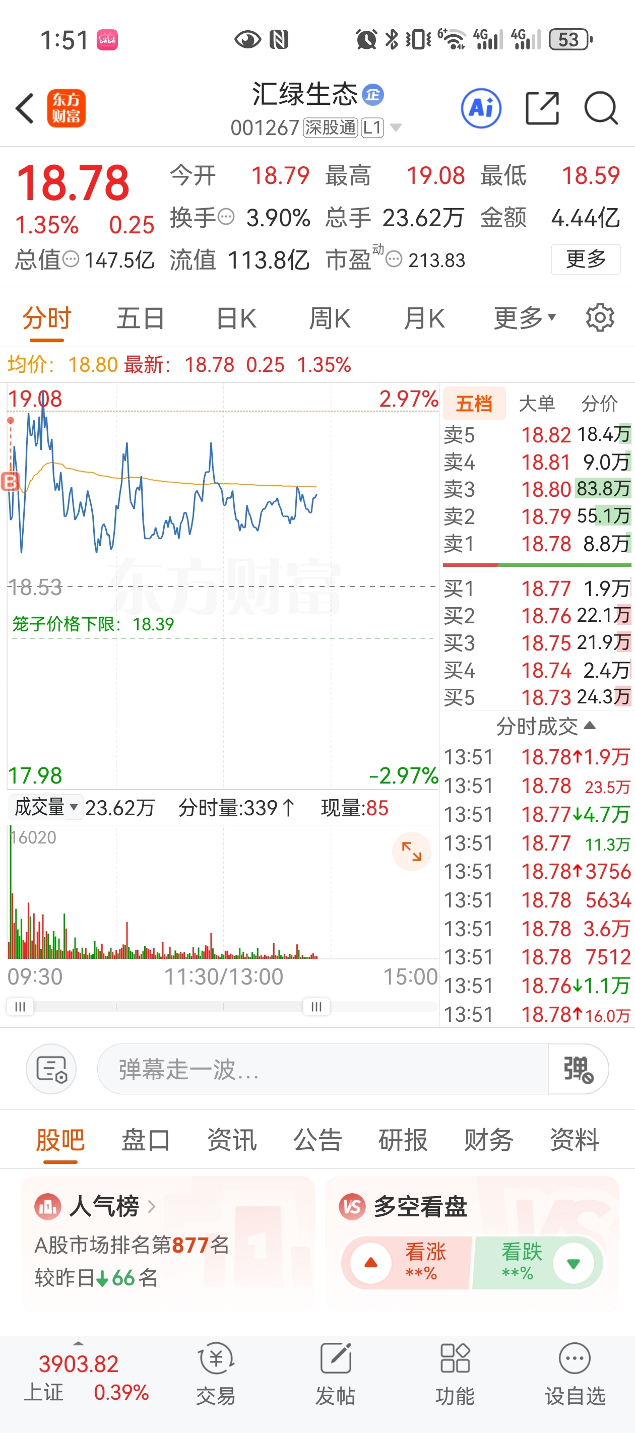 $汇绿生态(SZ001267)$ 买在最高点,我也是人才