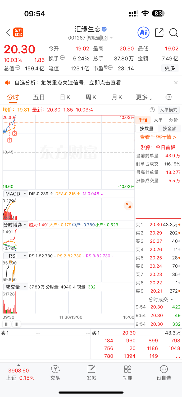 $汇绿生态(SZ001267)$ 跳空平台高开走强,刚启动的标志,是谁刚启动就跑路呢