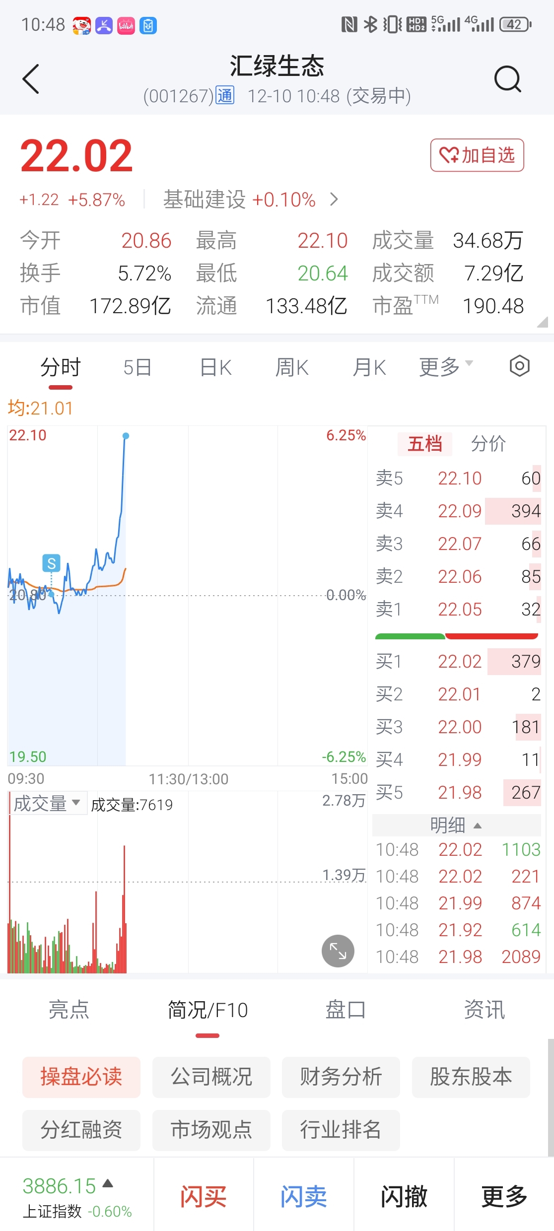 $汇绿生态(SZ001267)$ 我是 昨天追高进的
