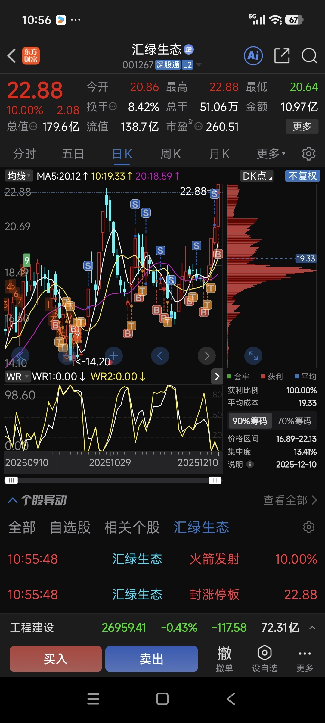 $汇绿生态(SZ001267)$ 明天破前高,前提是不炸板