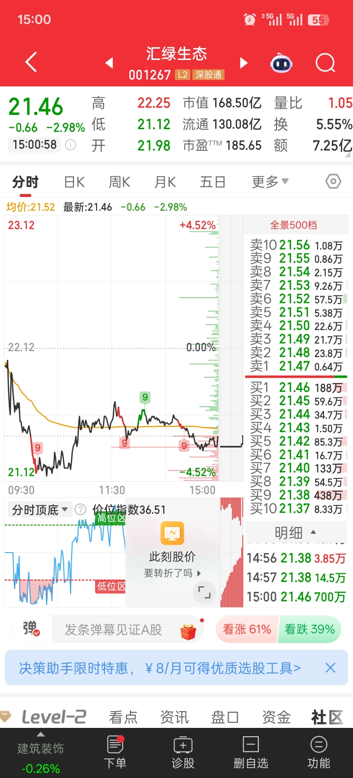 $汇绿生态(SZ001267)$ 尾盘抢筹,明天涨停