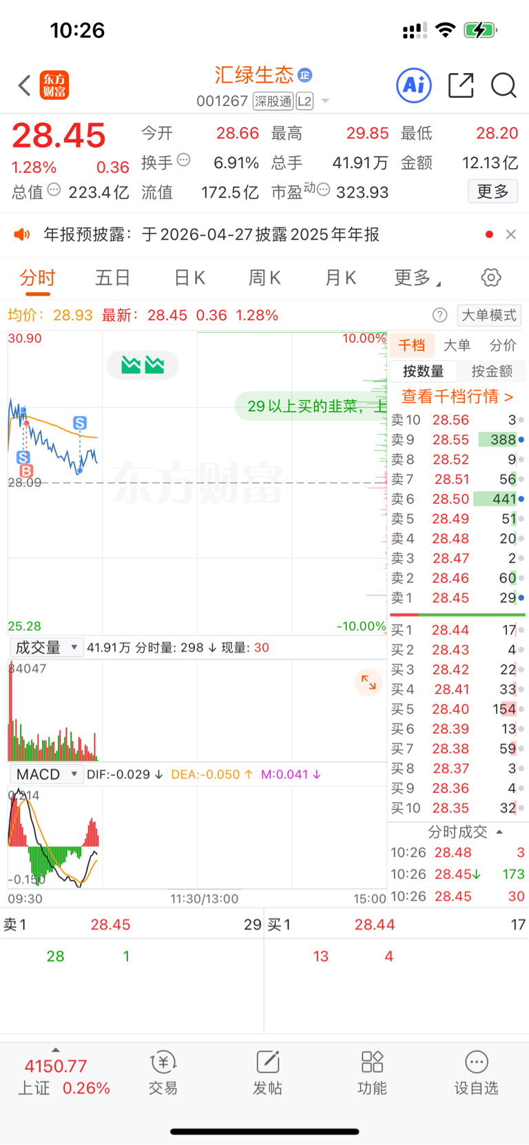 $汇绿生态(SZ001267)$ 高点没舍得卖 中间卖了又买回来了擦 又低点卖了