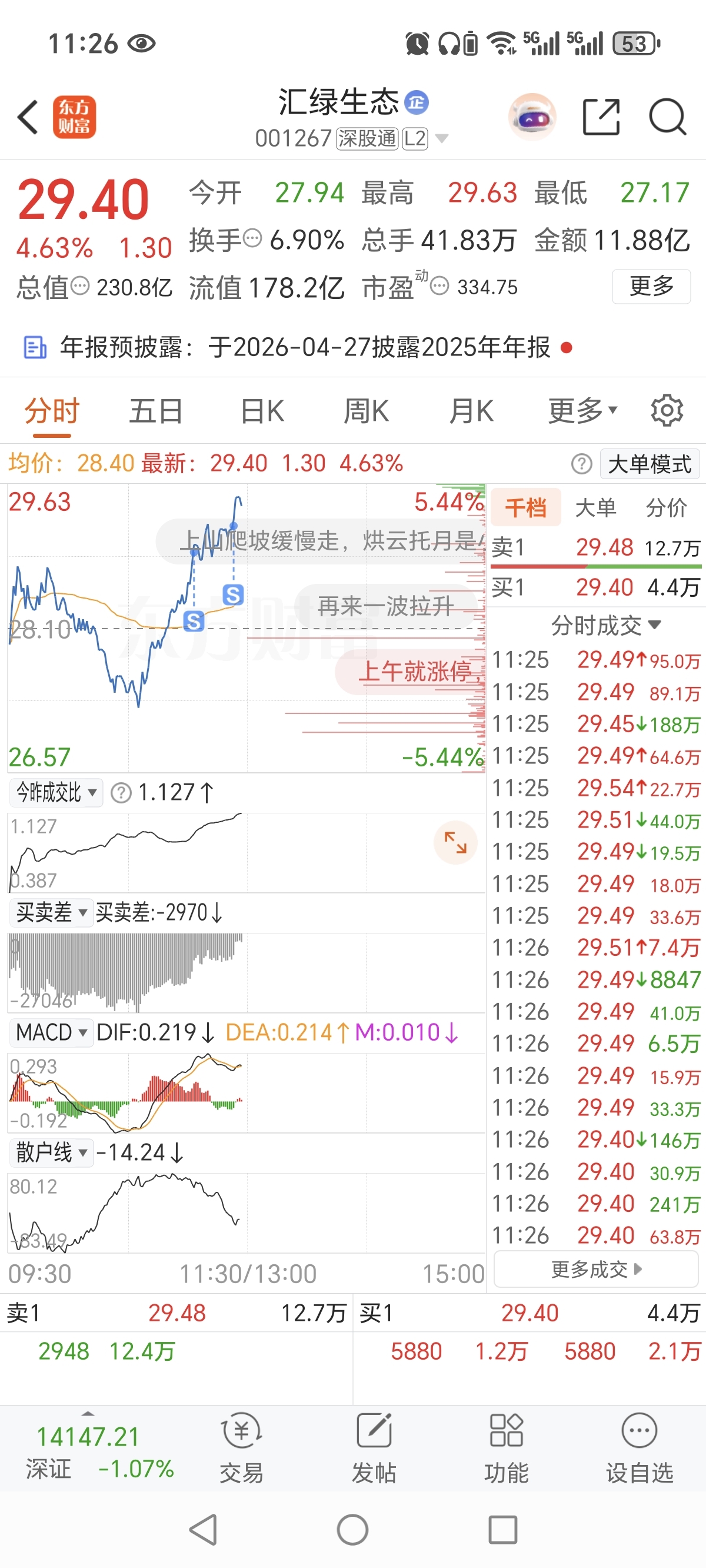 $汇绿生态(SZ001267)$ 早上没子弹,不然低吸,6得妈妈认不得,现在慢慢撤退一点点,不要多,后期还会猛,晚上给大家逻辑分析。