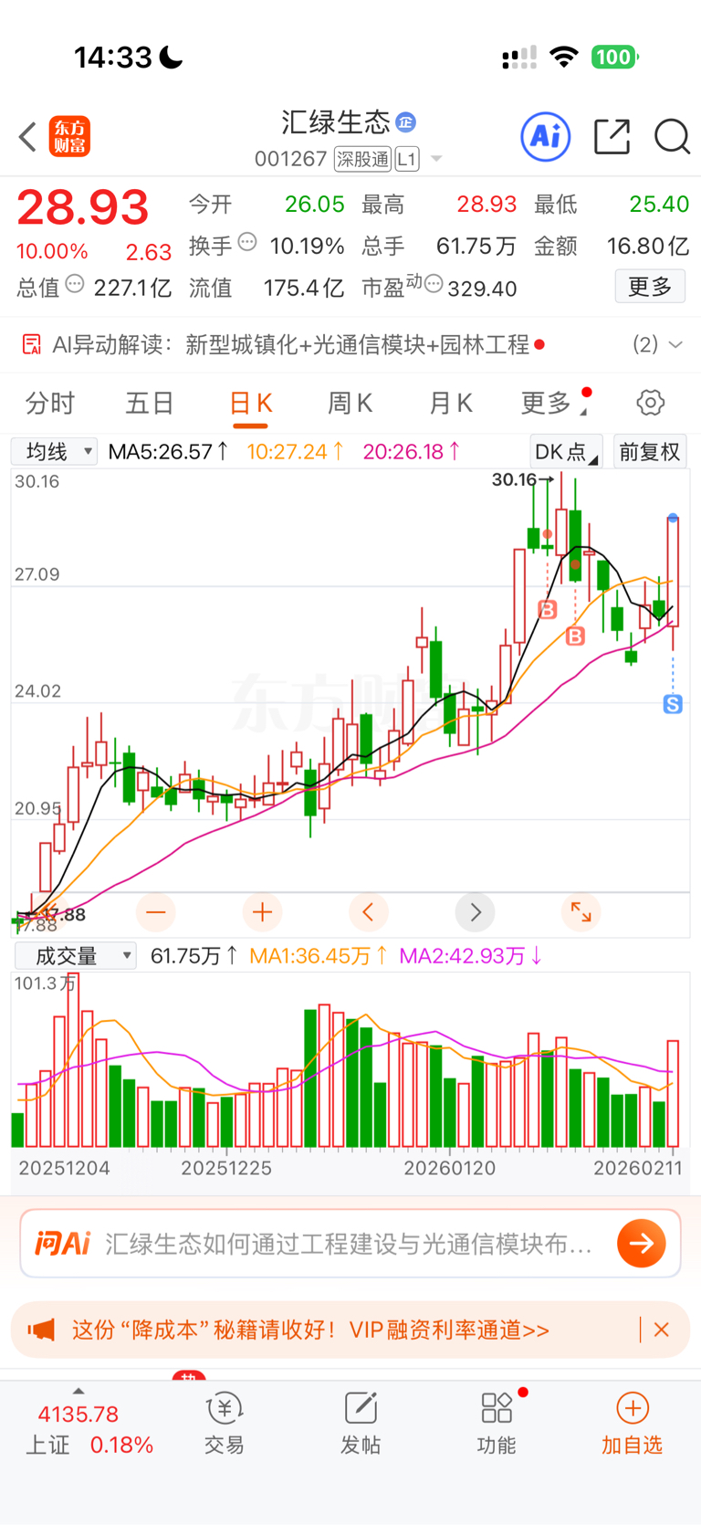$汇绿生态(SZ001267)$ 谢不杀之恩