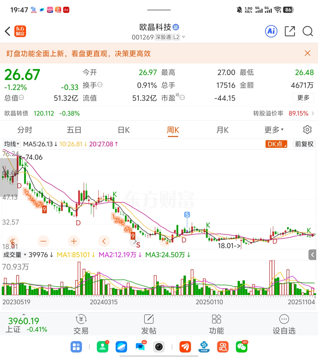 $欧晶科技(SZ001269)$ 那个号深套这个号完美的卖在了山低,这股还有活起来那天没!