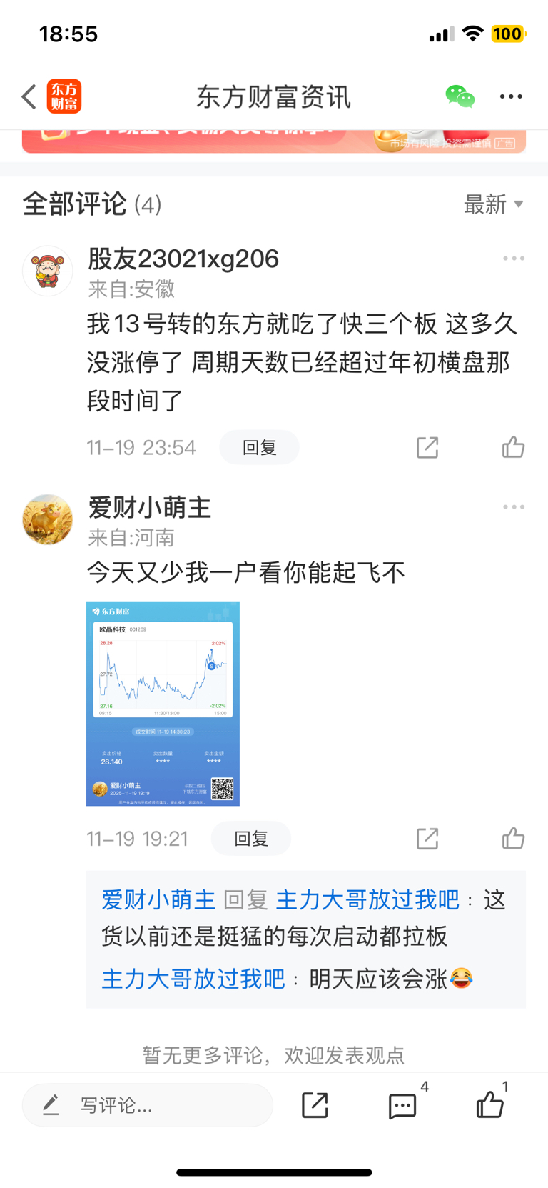 温馨提示: 1.根据《证券法》规定,禁止编造、传播虚假信息或者误导性信息,扰乱证券市场;2.用户在本社区发表的所有资料、言论等仅代表个人观点,与本网站立场无关,不对您构成任何投资建议。用户应基于自己的独立判断,自行决定证券投资并承担相应风险。《东方财富社区管理规定》