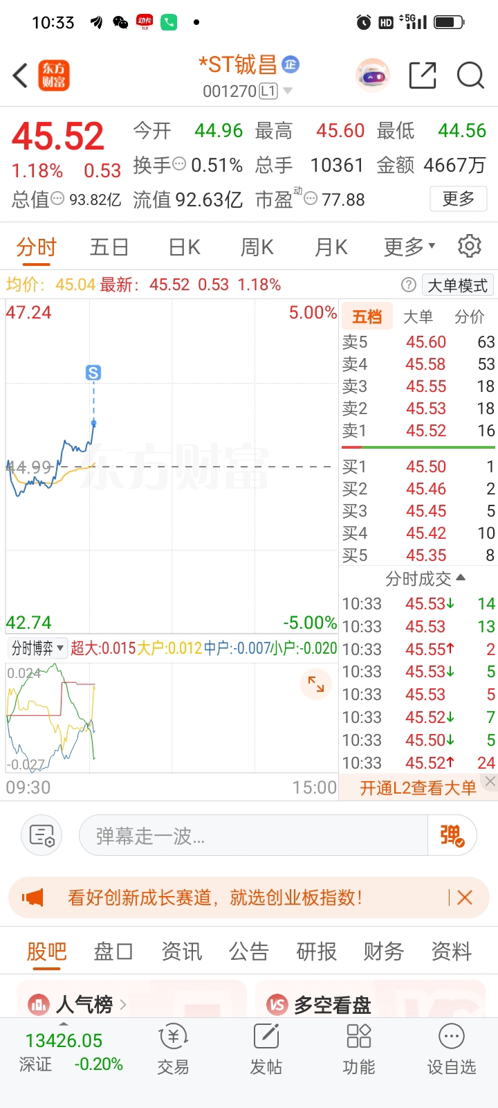 $*ST铖昌(SZ001270)$ 每天尾盘买,上午跑,爽