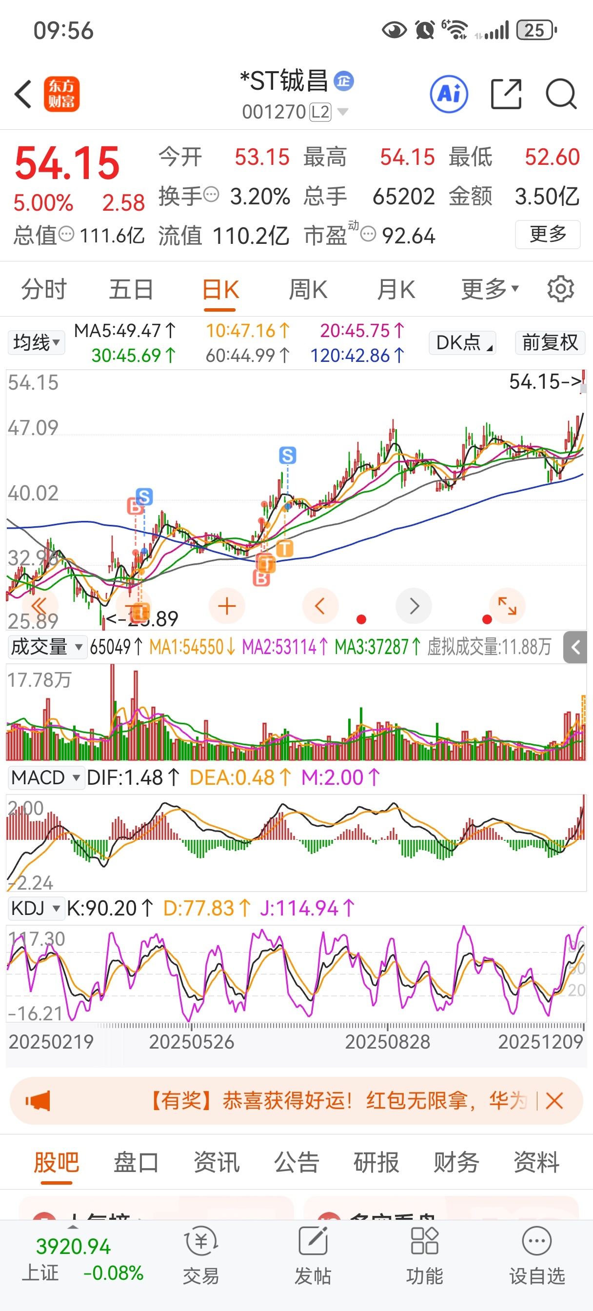 虽然不持有很久了也祝愿你继续大涨。因为曾经我相信你是牛股,只是没到炒摘帽的时候。