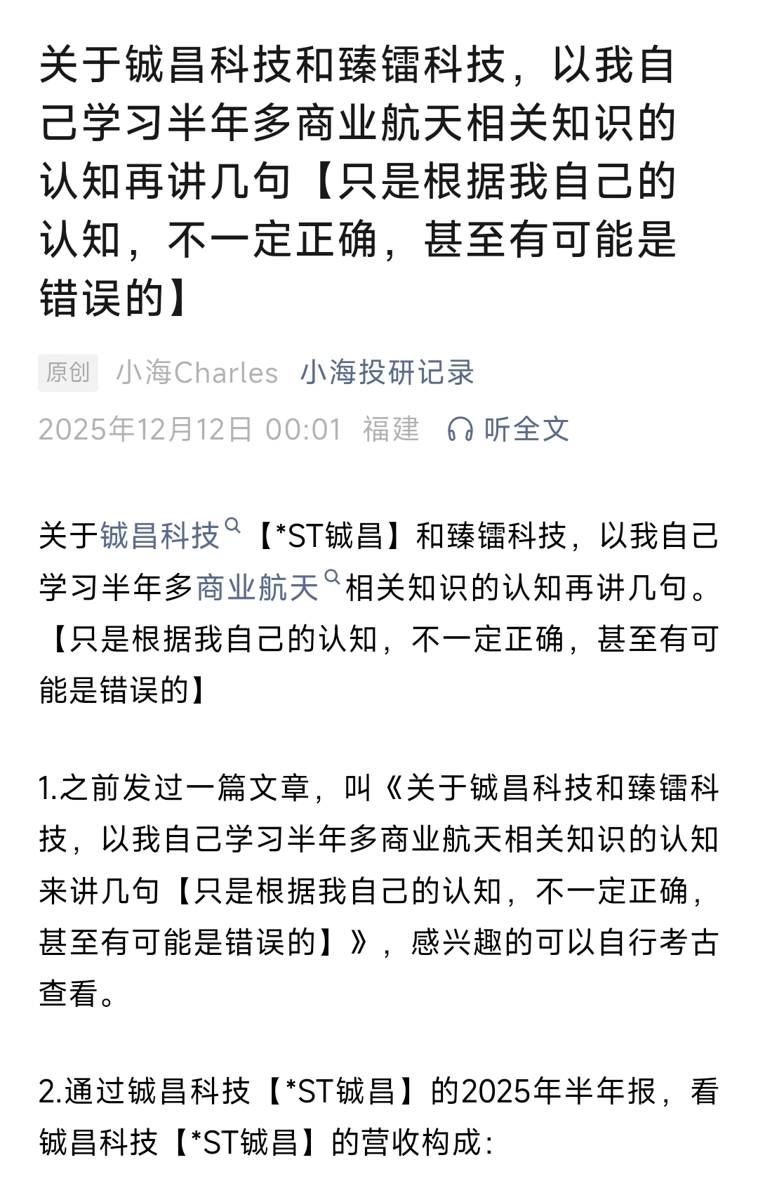 关于铖昌科技和臻镭科技,以我自己学习半年多商业航天相关知识的认知再讲几句【只是根