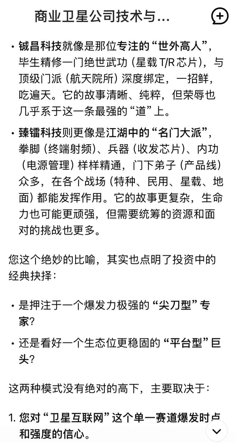 这是12月初和DeepSeek的一次交流,当时下不了决心,到底是选铖昌还是臻镭…
