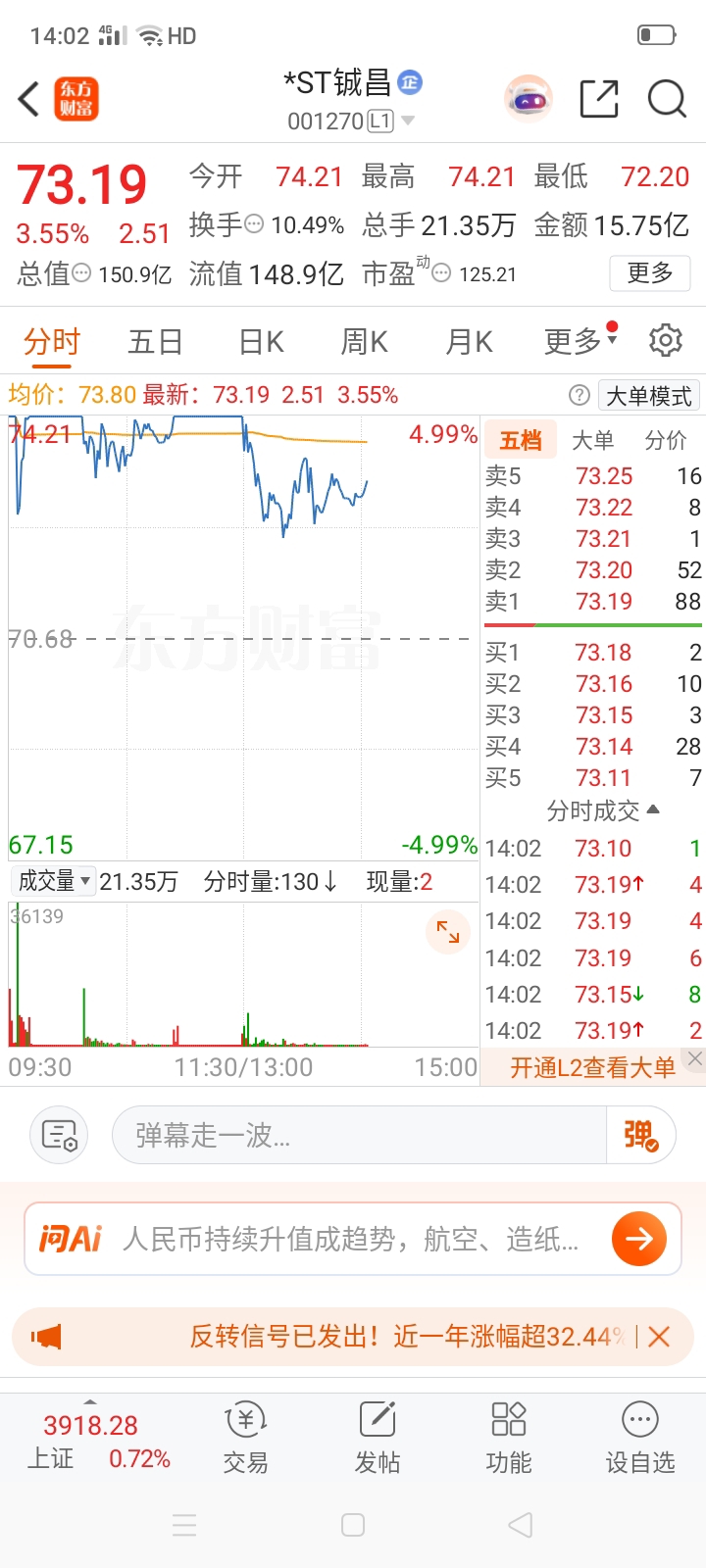 $*ST铖昌(SZ001270)$ 中国商业航天里面的两个龙头,中国卫星市盈3800,铖昌125,中国有很多可回收火箭要发射,要发几万卫星上天,马斯克太空公司明年上市,估值15000亿美元,商业航天就是风口,未来可期。
