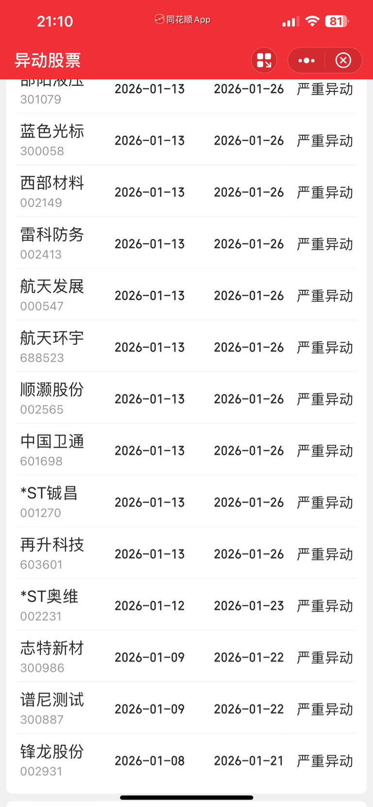 $*ST铖昌(SZ001270)$ 延长监管,到26号呢,再涨直接小黑屋十天