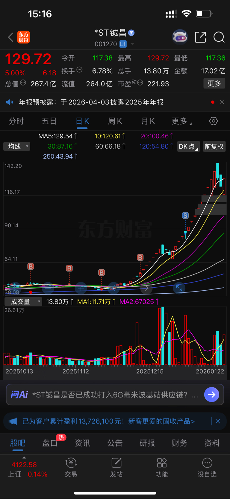 温馨提示: 1.根据《证券法》规定,禁止编造、传播虚假信息或者误导性信息,扰乱证券市场;2.用户在本社区发表的所有资料、言论等仅代表个人观点,与本网站立场无关,不对您构成任何投资建议。用户应基于自己的独立判断,自行决定证券投资并承担相应风险。《东方财富社区管理规定》