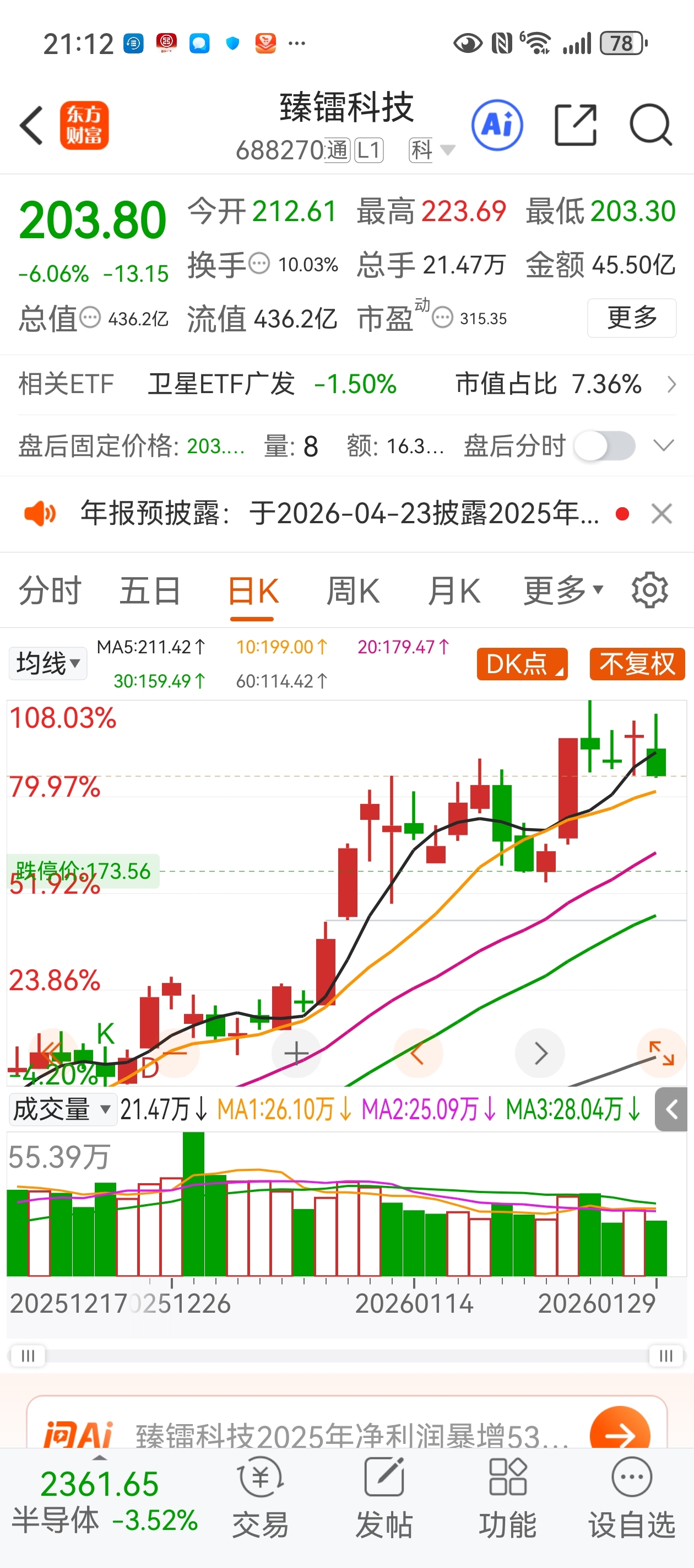 今天铖昌科技和这个收的都是倒锤子,K线一样,都是因为年报业绩