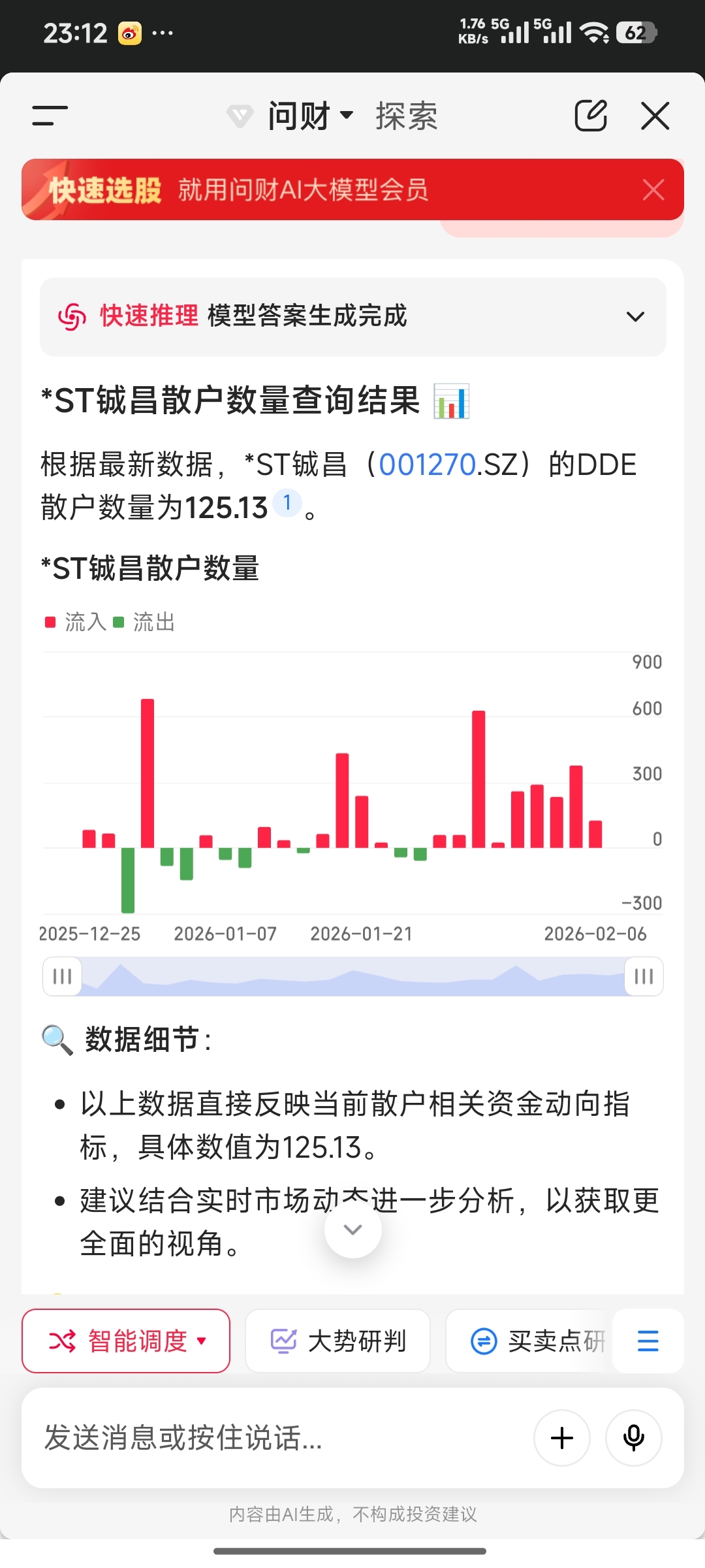 $*ST铖昌(SZ001270)$ 散户净流入十天,刚好这十天做了个圆球顶,这段时间也能感觉到,股吧是真热闹了