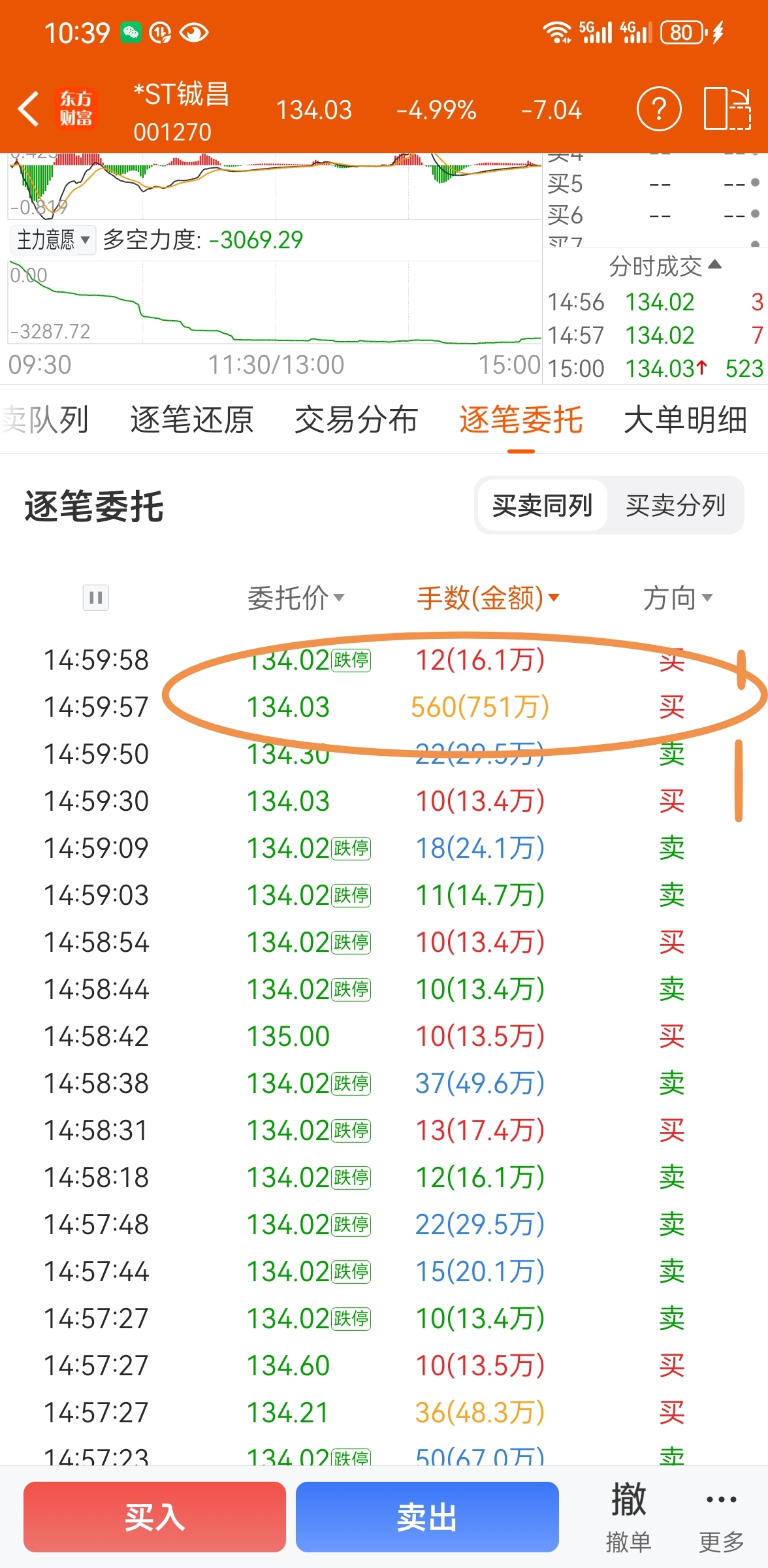 收盘时小散又被骗了筹码。最后这一笔把跌停扫了。