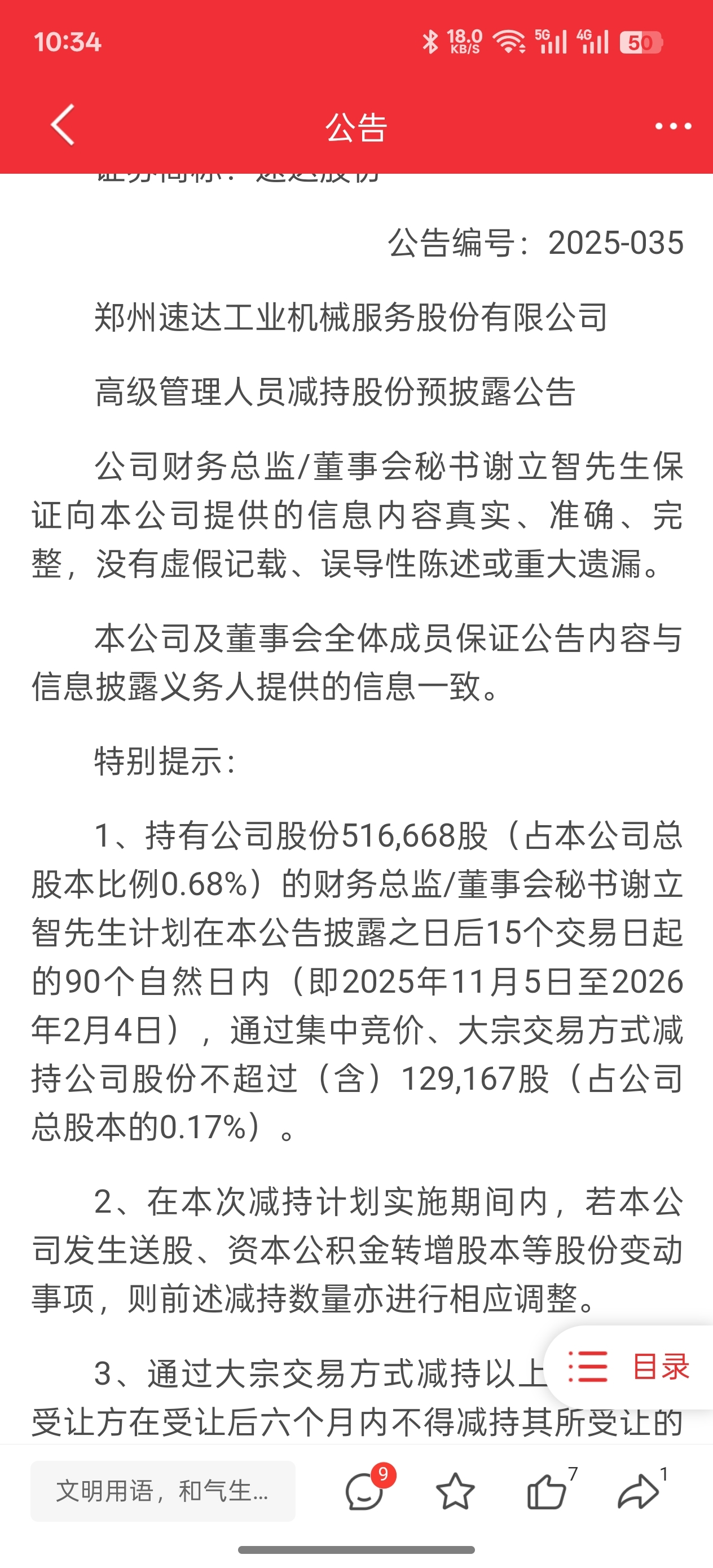 $速达股份(SZ001277)$ 减持结束了,不用怕#强势机会#