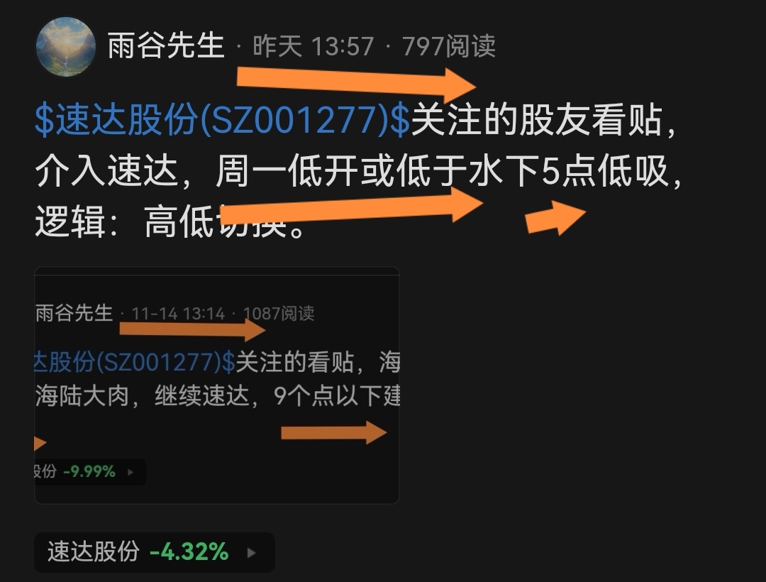 $速达股份(SZ001277)$ 关注的股友看贴,没有关注的看缘份,4点位置继续低吸,等周二,周四。