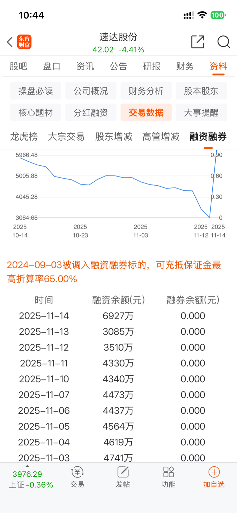 $速达股份(SZ001277)$ 11月14日,融资余额增加不少。