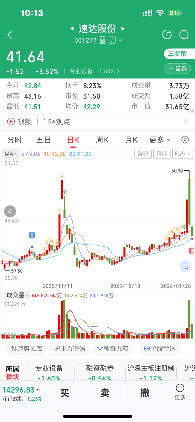 $速达股份(SZ001277)$ 一支有主力资金参与的股票,就特别适合散户参与。从日线和15分钟线看该股的主力庄家应该是年轻人。着急的想把大家洗出去。现在到起始位置就可以果断进了。 买入买入建仓建仓。
